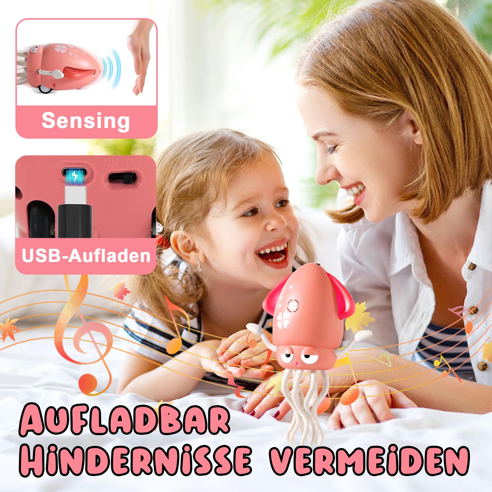 • 【Oktopus-Spielzeug zur Hindernisvermeidung】Das elektrische Krabbelspielzeug erkennt Hindernisse und umgeht sie, sodass der Spielspaß ohne ständige Unterbrechungen weitergeht. Der tanzende Tintenfisch fesselt die Aufmerksamkeit von Kindern und regt sie zum Krabbeln an – perfekt als aktives sensorisches Babyspielzeug, Lernspielzeug, Krabbelspielzeug und Spielzeug für 2- bis 4-Jährige.