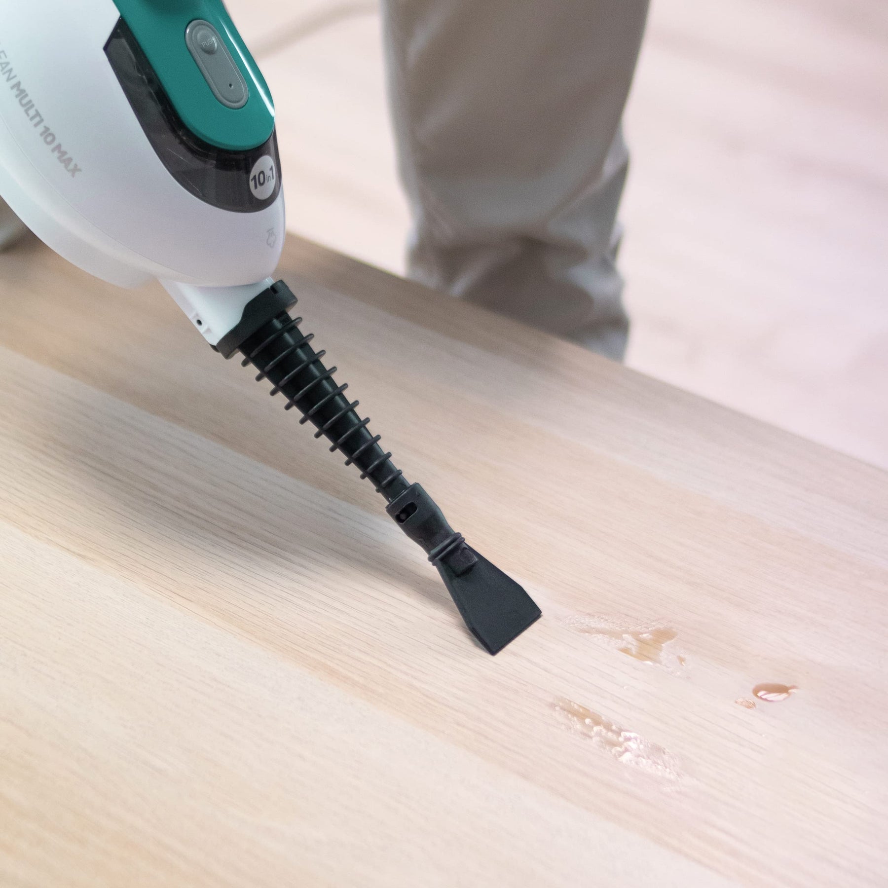 Einzelheiten: Dampfreiniger Sie brauchen keine Reinigungsmittel zu verwenden, halten Ihr Zuhause frisch und desinfizieren es, während Sie sich um Ihre Liebsten kümmern. Vermeiden Sie die Verwendung von Reinigungsmitteln und tragen Sie zum Umweltschutz bei. Der neue Steamclean Multi10 Max erzeugt dank seines überarbeiteten Designs und einer Leistung von 1500 W die optimale Dampfmenge. All dies in einer kompakten, leichteren und multifunktionalen Struktur. Er desinfiziert mühelos selbst die verstecktesten Ecken und bewegt sich sicher durch das Haus. Schneller und bequemer, in nur 10 Sekunden einsatzbereit. Die Reinigung Ihrer Wohnung muss nicht länger dauern als nötig. 10 Funktionen, die in kürzester Zeit einsatzbereit sind. Sie können den Steamclean Multi 10 Max so lange verwenden, wie Sie ihn brauchen, und erreichen dank der dreieckigen Basis, die einen einfachen Zugang zu allen Ecken ermöglicht, auch die schwierigsten Oberflächen. Der große 380-ml-Tank ermöglicht es Ihnen, lange zu reinigen, ohne nachfüllen zu müssen - die Kraft von 10 in 1! Sparen Sie Zeit und Geld mit einem einzigen Reiniger, mit dem Sie Böden, Textilien, Fenster, Badezimmer, ... desinfizieren können. Das Steamclean-Dampfsystem beseitigt 99,9 % der Viren, Bakterien und Keime. Enthält 2 Mikrofasermopps für Hartböden, Parkett und Spezialzubehör für Teppiche. Präzisionsmop, schräger Konzentrator, runde Kunststoffbürste, Spezialbürste für Fugen, Schaberzubehör, Metallentkalkungsbürste, Mikrofaserbürste und -tuch zum Bügeln und Reinigen von Textilien, Fensterreinigungszubehör, Trichter und Messbecher.