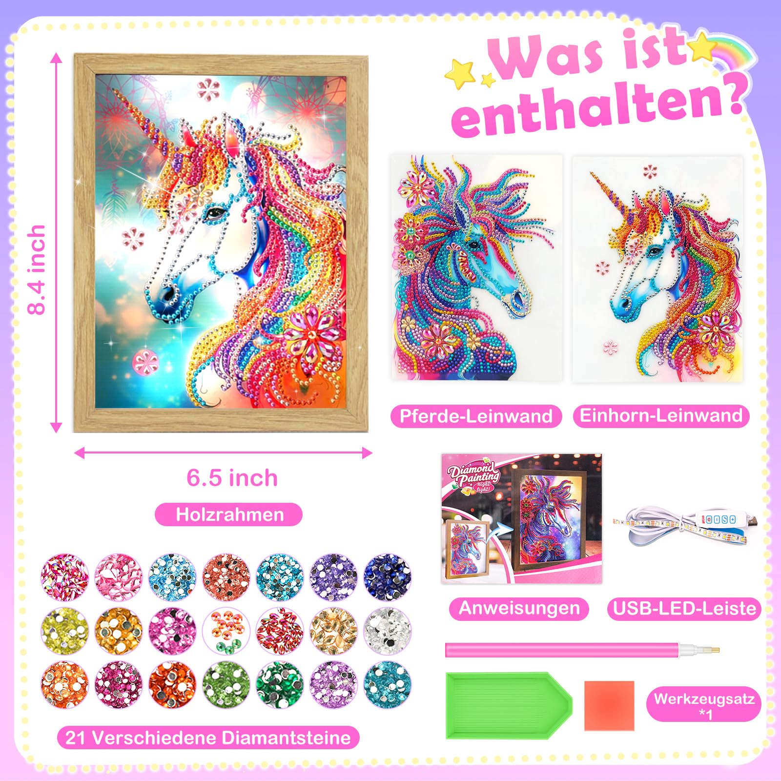• 【Geschenk mädchen 5 6 7 8 9 10 11 12 jahre】Bastelset kinder ab 6 jahren ist nicht nur zum basteln mädchen, als bilderrahmen, sondern kann auch als nachtlicht kinder einhorn genutzt werden. Es eignet sich für kinderzimmer deko, dekoration wohnzimmer und einhorn deko kindergeburtstag. Es ist sowohl einhorn geschenke für mädchen als auch geschenk pferde mädchen, ideal für geburtstage, ostern, thanksgiving und weihnachtsgeschenke mädchen geschenke 5 6 7 8 9 10 11 12 jahre.