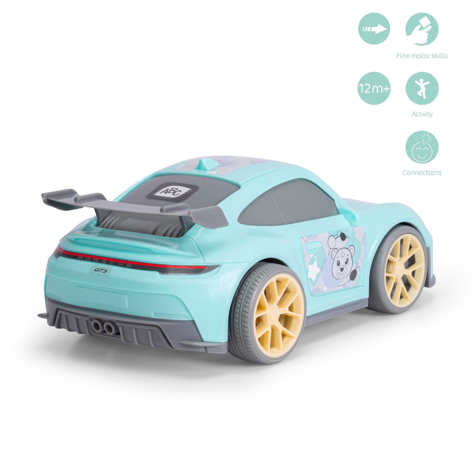 Dickie Toys ABC - Porsche 911 GT3 Cozy Chris Auto (27 cm) - großes Spielzeugauto ab 1 Jahr mit Freilauf & niedlichen Aufklebern, Spielzeug für Babys und Kinder ab 12 Monate