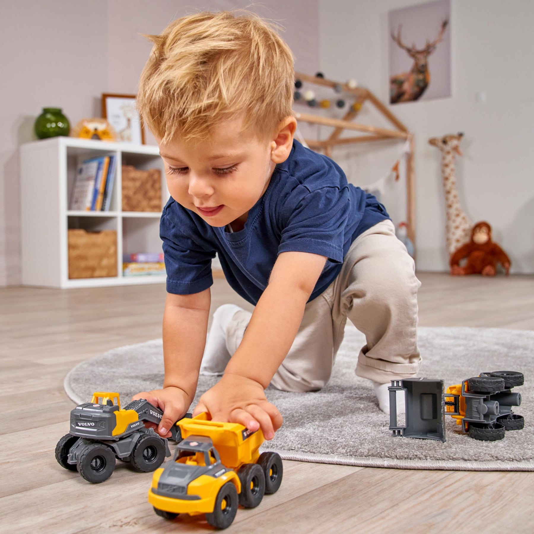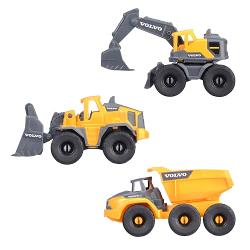 Dieses Baufahrzeuge Spielzeugset verwandelt jedes Kinderzimmer in eine lebendige Baustelle. Mit originalgetreuen Volvo-Modellen - Bagger Spielzeug ab 3 Jahr, Radlader Spielzeug und Spielzeug LKW - erleben Kinder authentische Baustellenabenteuer. Jedes 16 cm große Fahrzeug mit Freilauf rollt mühelos über jeden Untergrund und macht das Spielen zum puren Vergnügen. Ihre kleinen Baumeister werden stundenlang fasziniert sein von den realistischen Details und endlosen Spielmöglichkeiten.