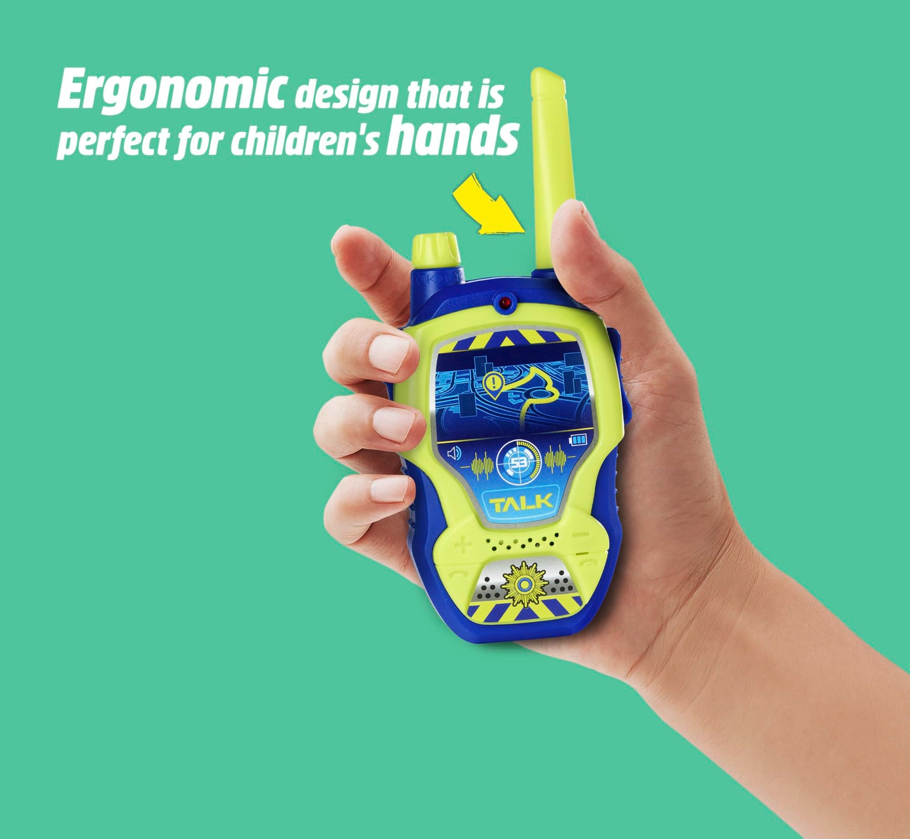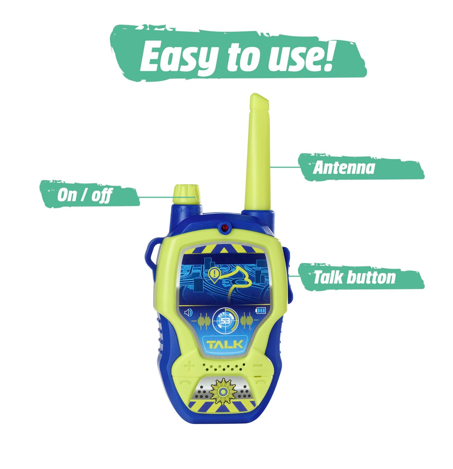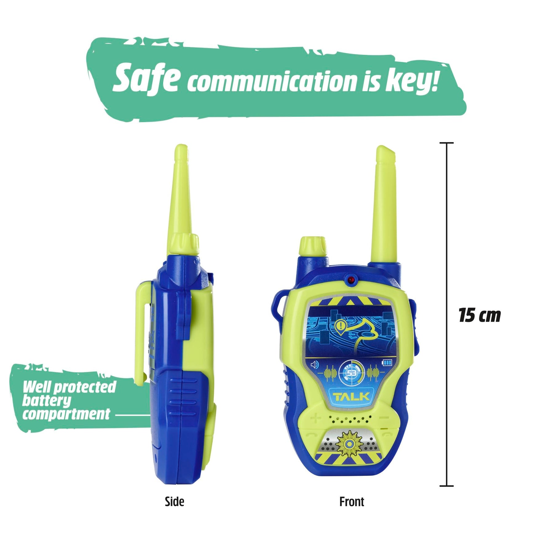 • Technische Details – 2.4 GHz Funkgeräte mit bis zu 100 Meter Reichweite auf offenem Gelände, kindgerechte Lautstärke und Sendeleistung, mit Rauschunterdrückung, inkl. 2x3 AAA-Batterien enthalten.