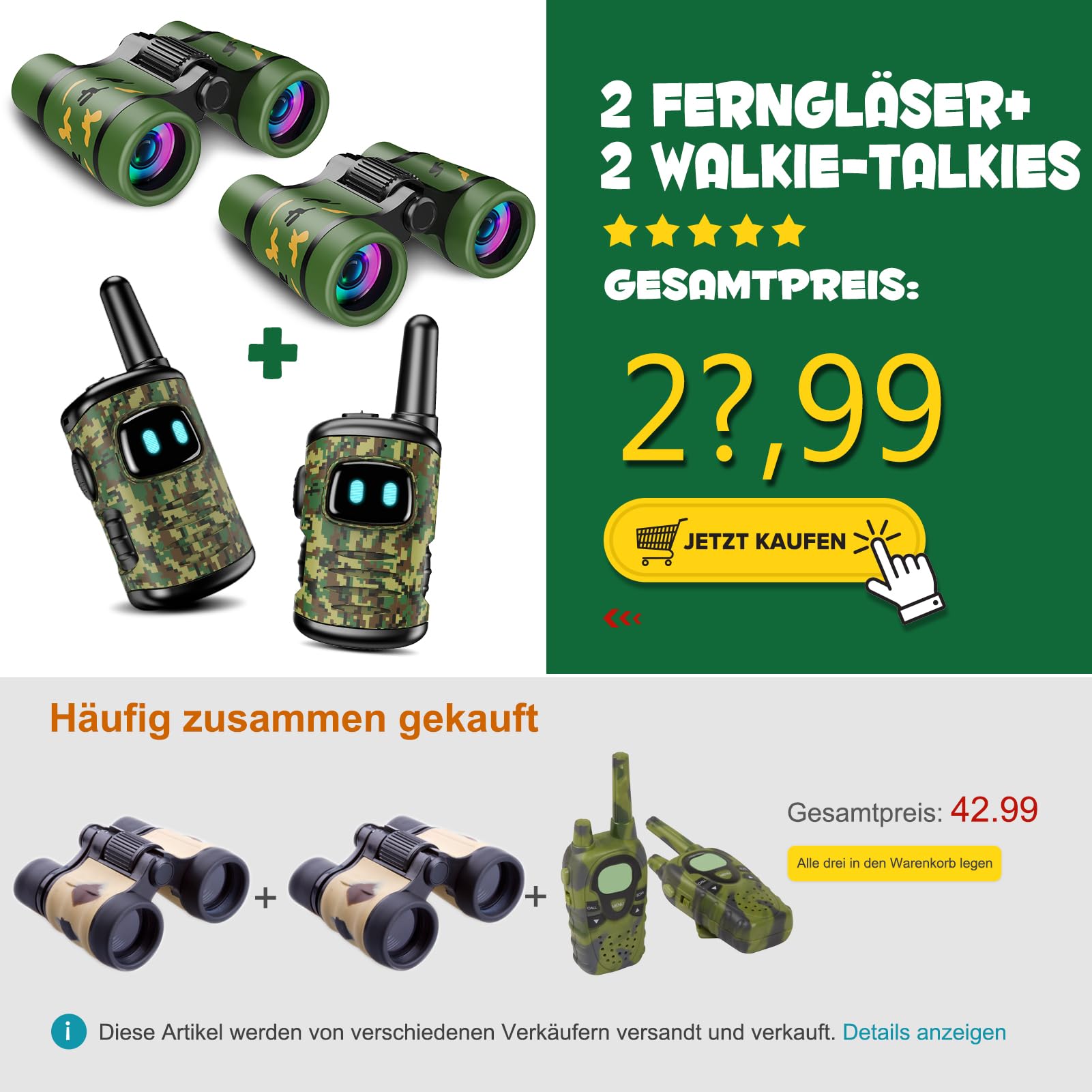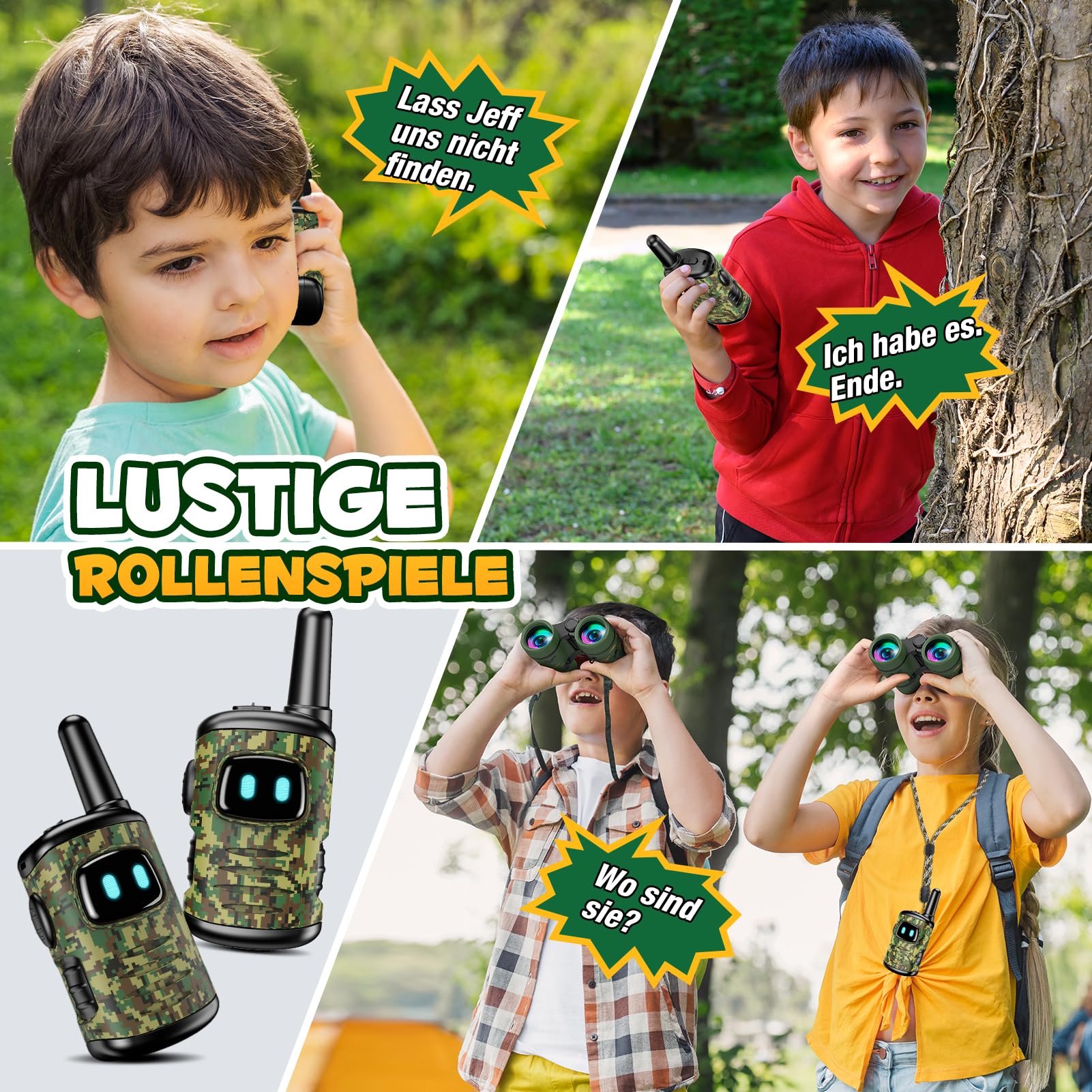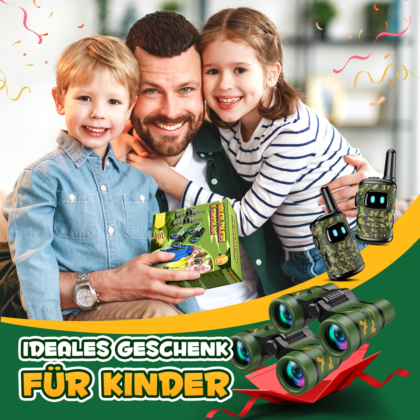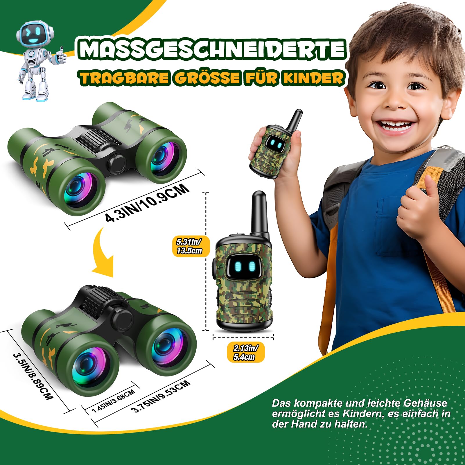 - 【Abenteuerset Hervorragend】Dieses Set enthält zwei Walkie-Talkies, zwei 4×30-Ferngläser und vier Lanyards. Kinder können es verwenden, um Rollenspiele wie Spione und Polizisten, Soldaten und Helden zu spielen. Es ist auch das ideale Spielzeug für Outdoor-Abenteuer, ob beim Wandern, Reisen oder Campen, es wird Ihrem Kind eine spannende Entdeckungsreise bescheren.
