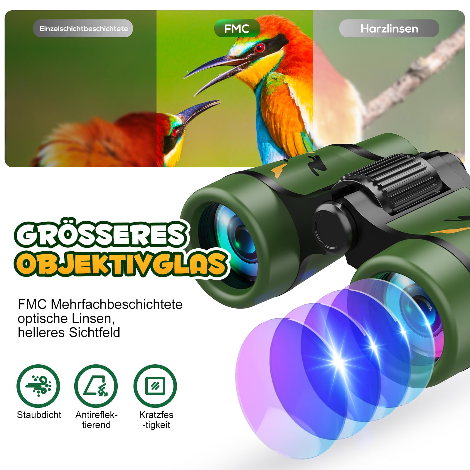 - 【Essentielles Spielzeug für draußen】Dieses Fernglas ist auf den Augenabstand einstellbar. Die 4-fache Vergrößerung und das hervorragende Sichtfeld lassen Ihr Kind nicht nur die Welt näher betrachten, sondern verbessern auch seine Fähigkeit zu erforschen und seine Neugier zu befriedigen. Ideal für Vogelbeobachtung, Bootfahren und andere Naturfreuden.