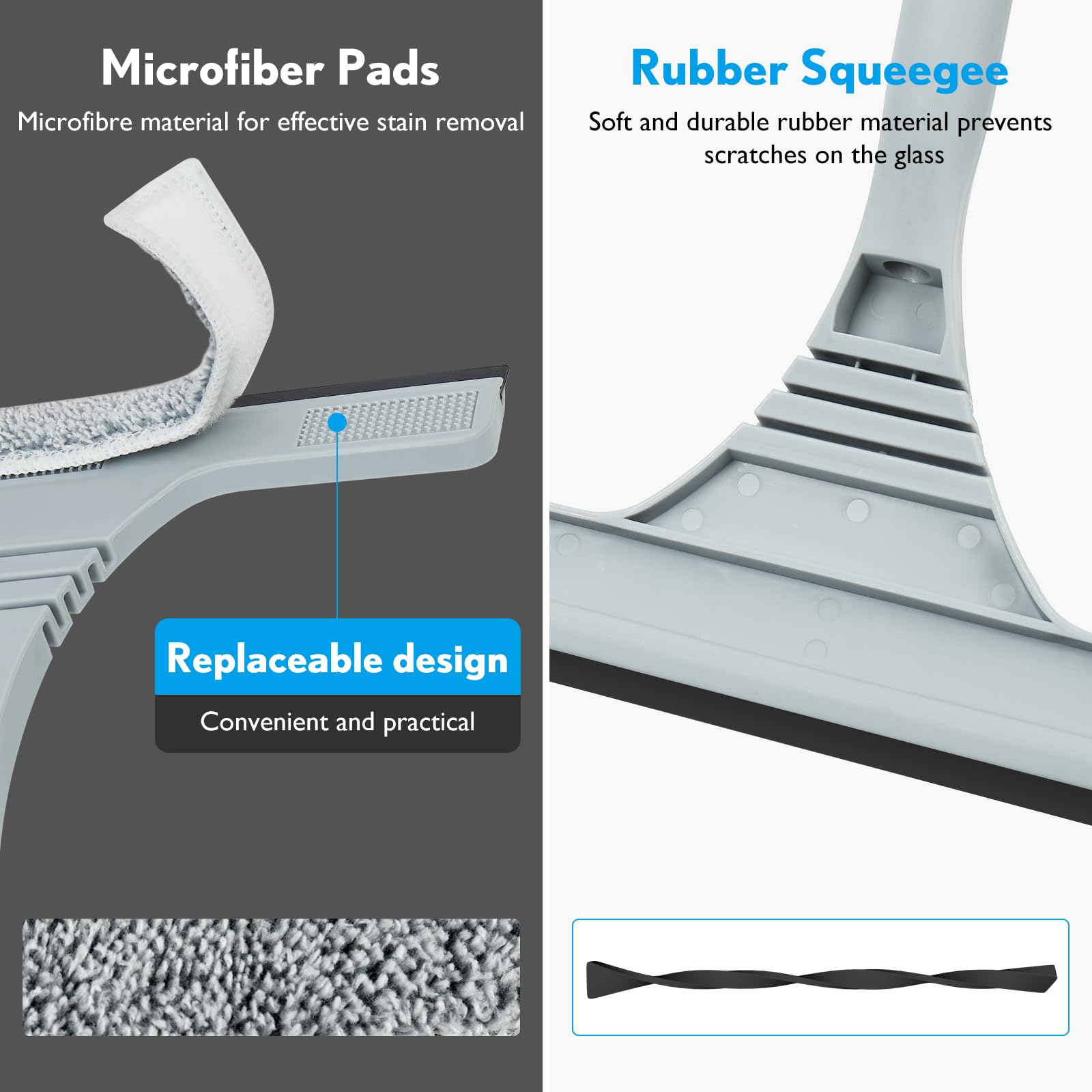- ✅【Mit Reinigungswerkzeug - Schaber】 Kratzt Flecken weg und spült sie anschließend zur einfachen Reinigung aus. Gerade Kante entfernt Schmutz und Wasser und die gezackte Kante kratzt Haare und Staub ab.