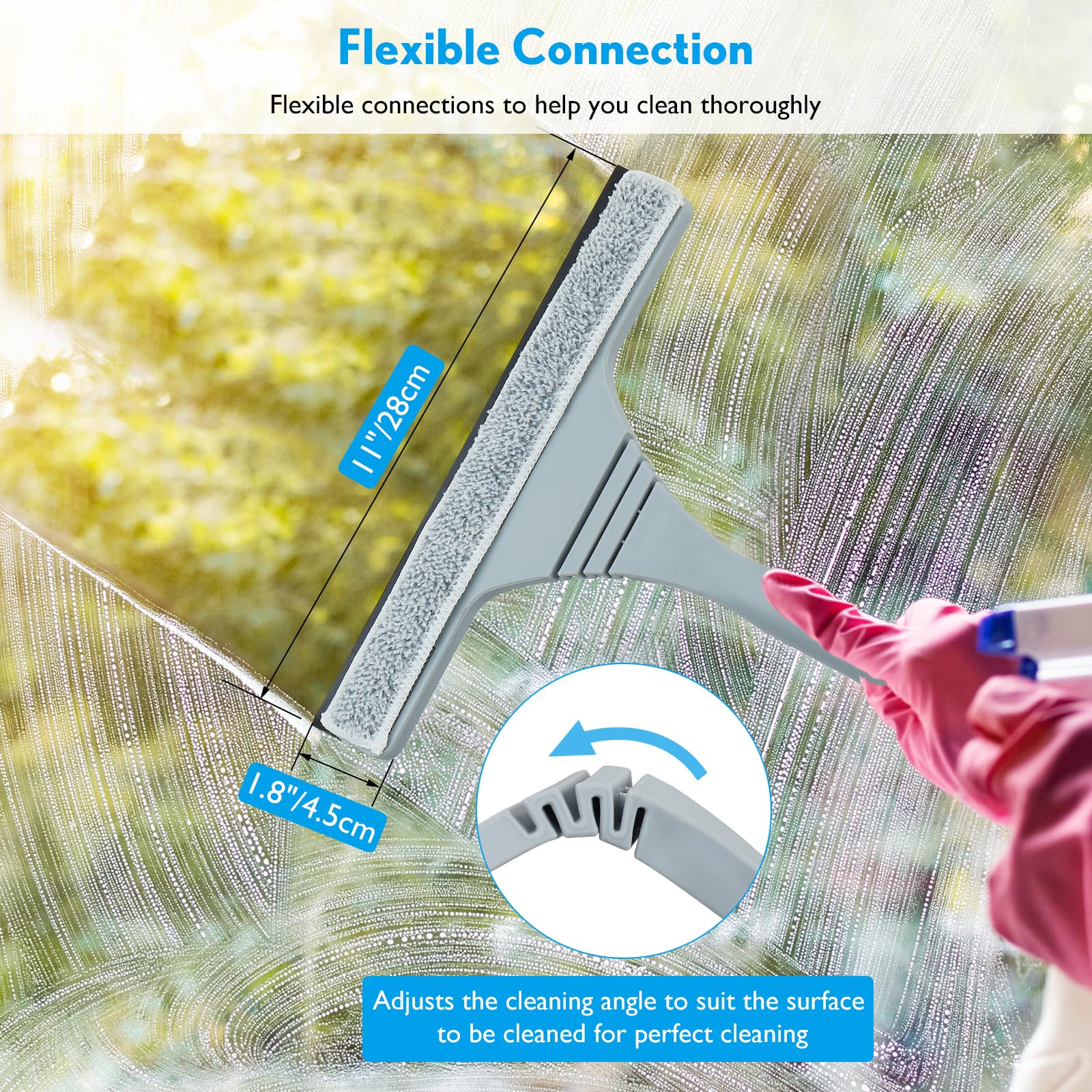 - ✅【Mehrzweck-Fensterputzer】 Durch die biegsamen, elastischen Gelenke kann der Einsatzwinkel für eine bessere Anpassung an die zu reinigende Fläche eingestellt werden. Fensterwischer reinigt effektiv hohe Fenster, Autoscheiben, Glasflächen.