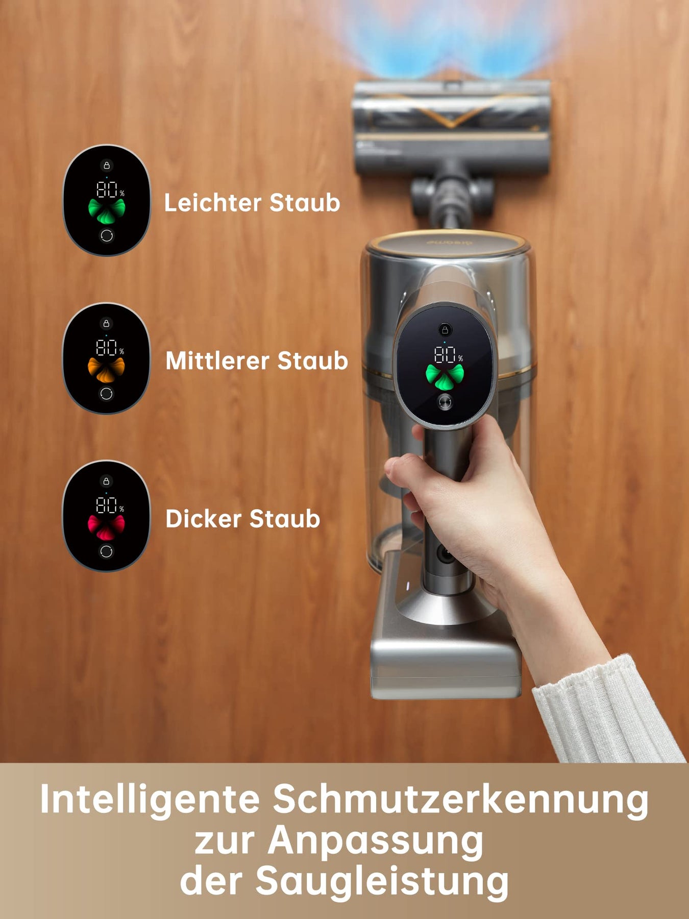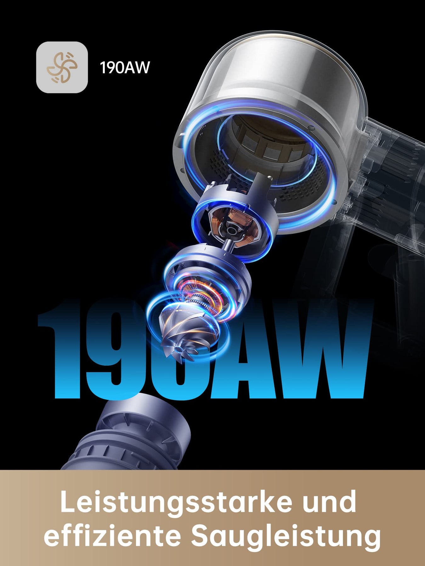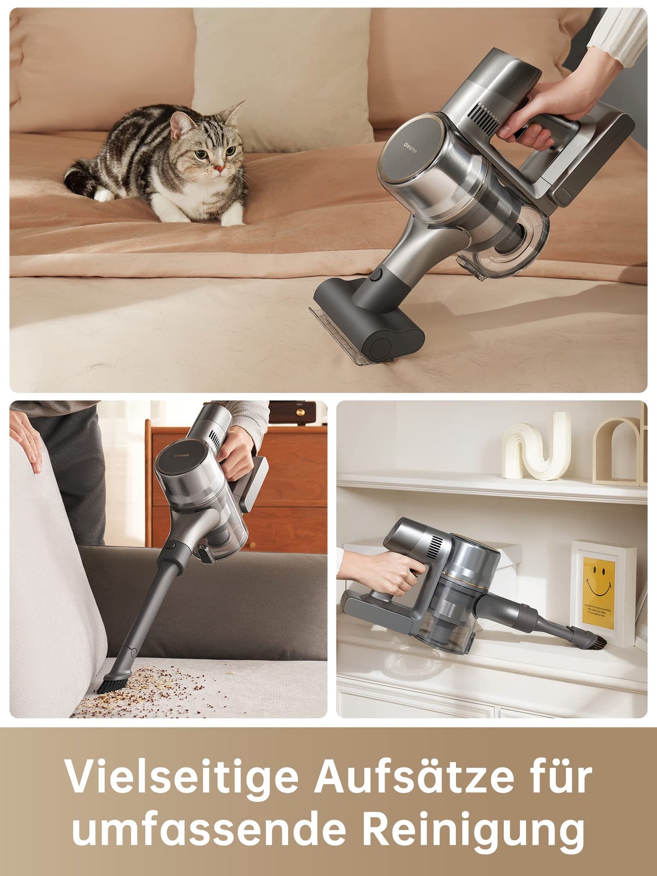 - Kluge Funktionen: Der R20 mit seiner kraftvollen 190AW-Saugleistung, intelligenter Stauberkennung und den austauschbaren Bürstenköpfen und Aufsätzen bieten effektive Reinigung für jede Oberfläche