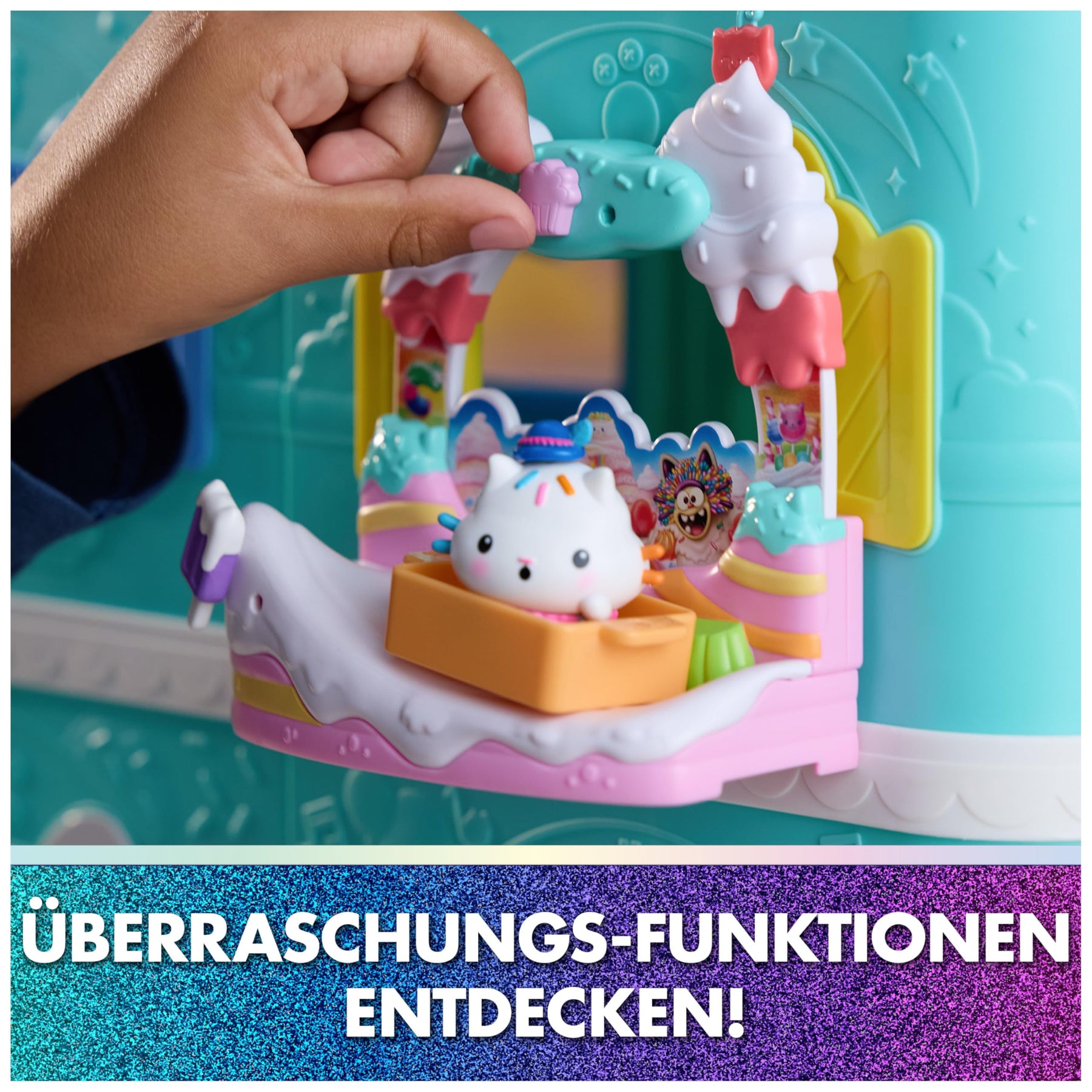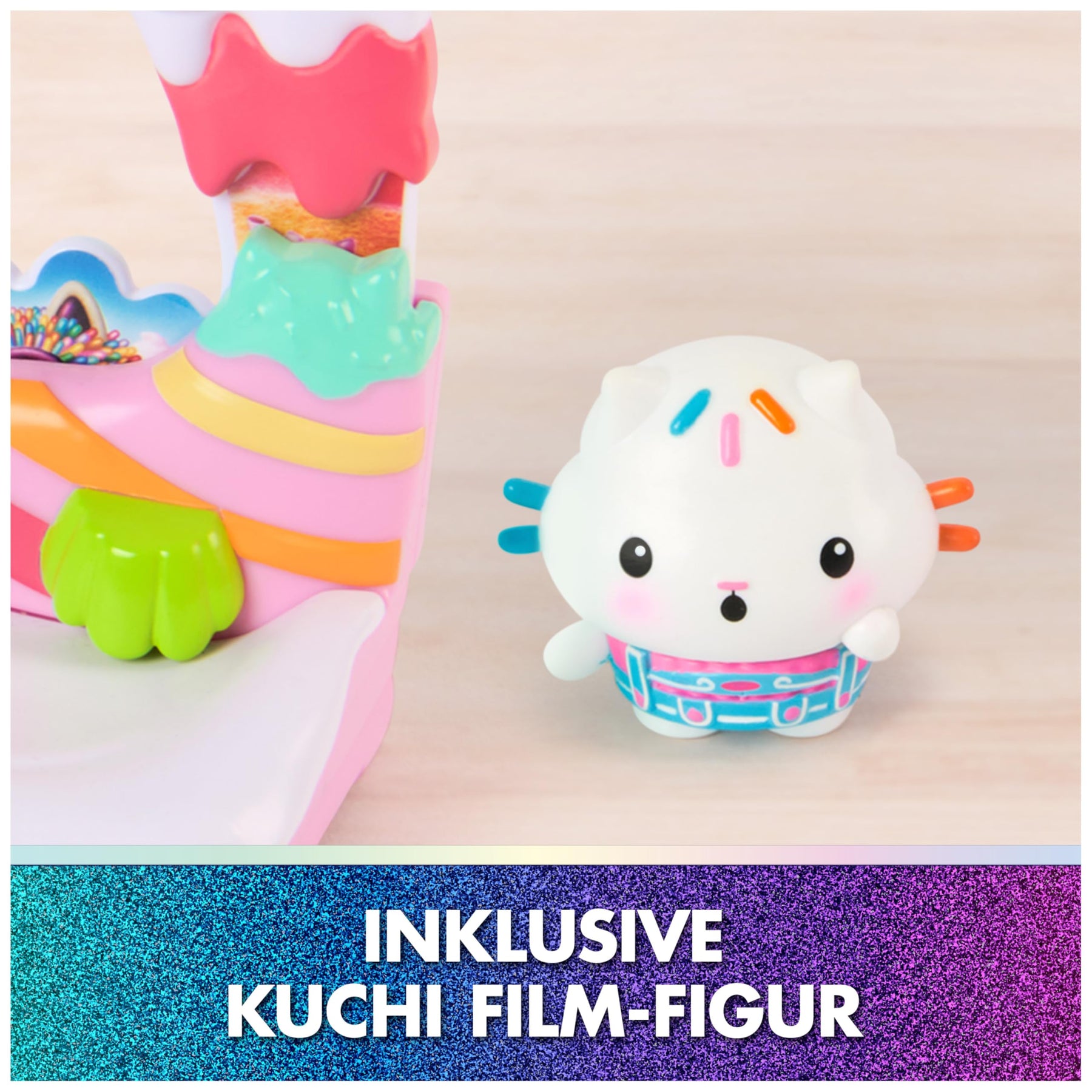 • Gabby-Filmzauber: Dieses Spielset enthält eine exklusive Kuchi-Figur (EN: Cakey) im Design von Gabby’s Dollhouse: Der Film sowie Kirschen und süße Accessoires für kreatives Spielvergnügen