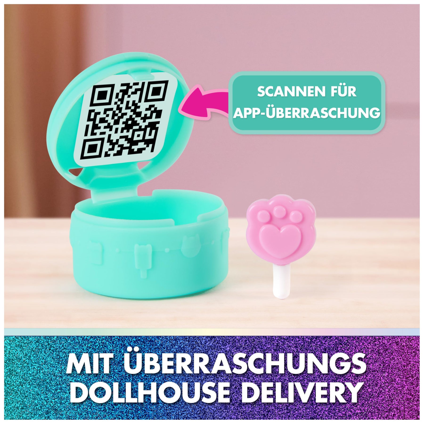 • Überraschung inklusive: Genau wie Gabby in der Serie öffnen Kinder die Dollhouse Delivery, entdecken ein geheimes Zubehörteil und schalten per QR-Code eine digitale Überraschung in der App frei