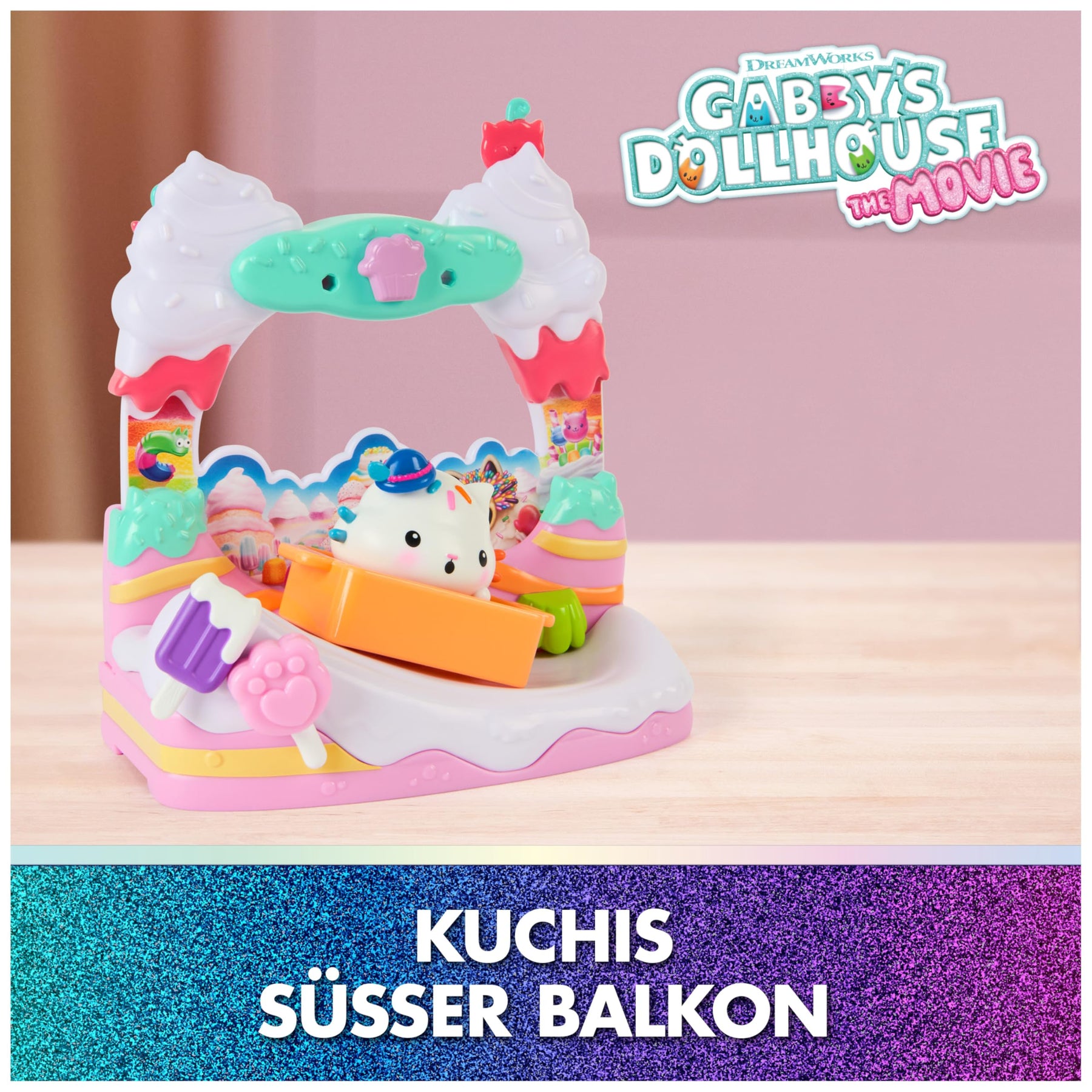 DREAMWORKS GABBY'S DOLLHOUSE: DER FILM - "Kuchis süßer Balkon", Spielset mit Spielfigur & Puppenhaus Zubehör für Kinder ab 3 Jahren