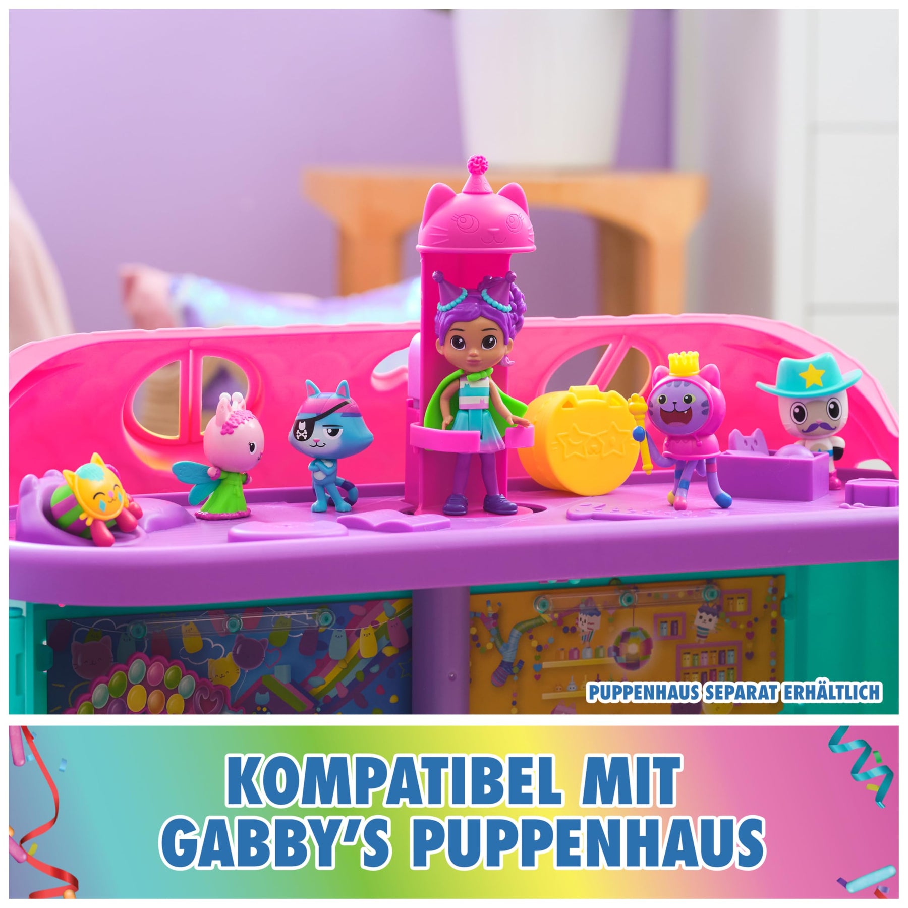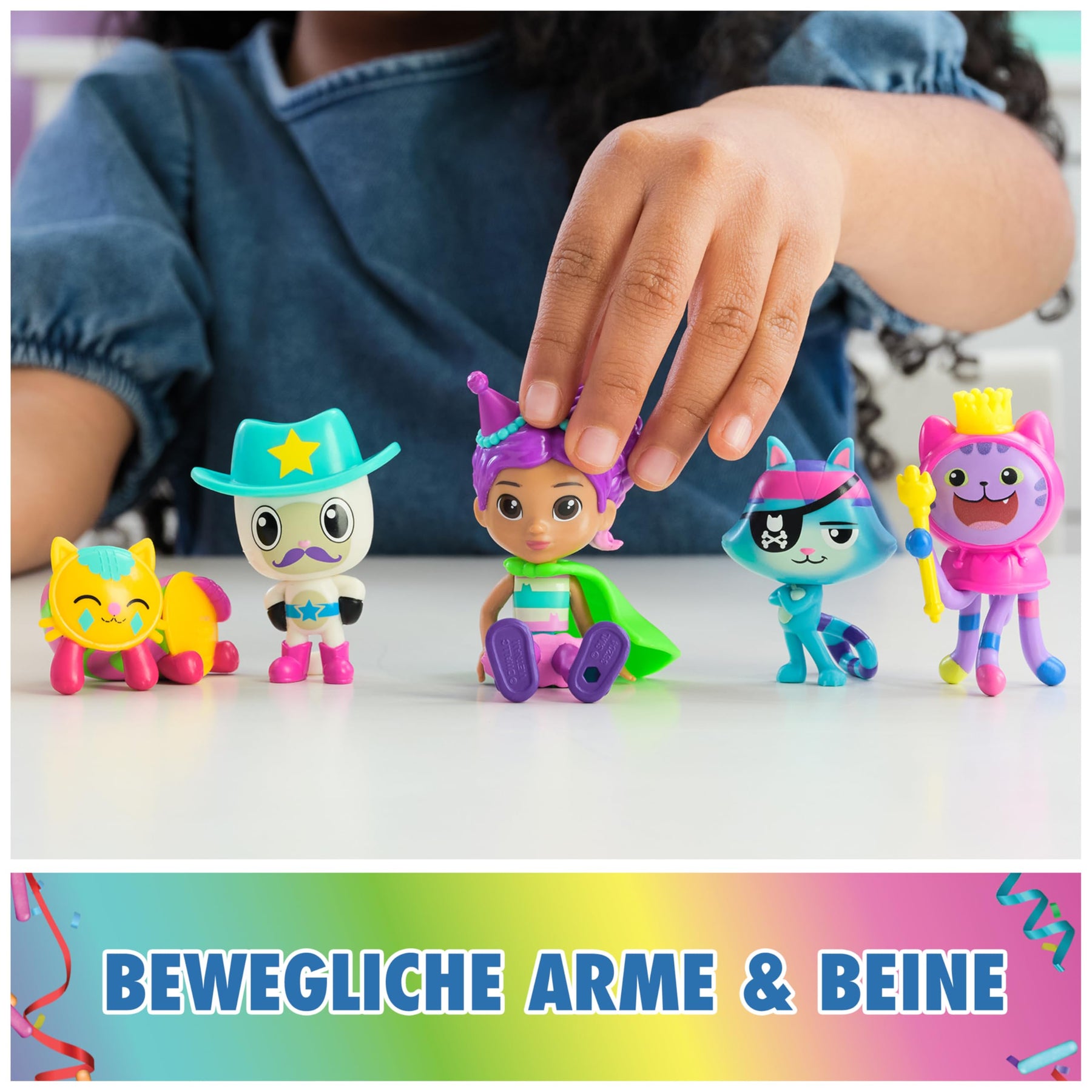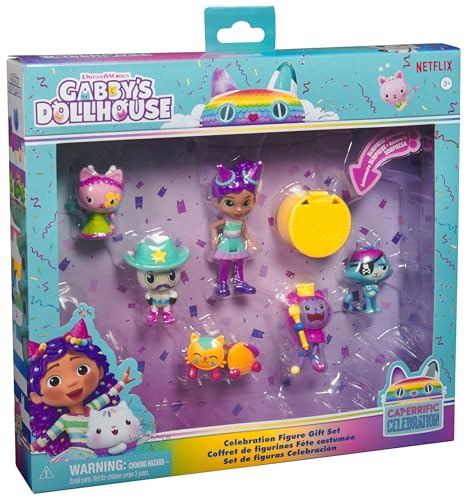 Mit dem DreamWorks Gabby's Dollhouse Party-Figuren Geschenkset von Spin Master können Vorschulkinder in die katz-tastische Welt der beliebten Animationsserie Gabby's Dollhouse eintauchen. Das Set umfasst eine Gabby Figur in ihrem unverkennbaren Party-Outfit, außerdem sechs beliebte Katzenfiguren, wie Panda Pfötchen, DJ Katzenminze, Ratkatz, Kuschelkatze und Kitty Fee, die ebenfalls im festlichen Partylook kommen. Außerdem ist eine Puppenhaus-Überraschungsbox mit einem coolen Umhang zu entdecken. Für eine weitere Überraschung kann der QR-Code in der Puppenhaus-Überraschungsbox gescannt werden, um eine besondere Belohnung in der Gabby's Dollhouse App freizuschalten (verfügbar für iOS und Android). Gabby's Dollhouse-Spielzeug ist das ideale Geschenk für Kinder, die Fans der beliebten Netflix-Serie sind und gerne Puppenhauswelten nachbauen. Mit einer Auswahl aus liebenswerten Katzenfiguren, Zubehörteilen und Puppenhausmöbeln können Kinder ab 3 Jahren ihre ganz eigene Gabby's Dollouse Welt zuhause lebendig werden lassen. Von Spin Master gibt es viele weitere Gabby's Dollhouse Spielzeuge, wie das Partyzimmer Spielset, das das Puppenhaus mit einem Skate-Park um ein Dachgeschoss erweitert oder niedliche Deluxe Räume (alles separat erhältlich), die ebenfalls in das Puppenhaus eingeschoben werden können und die Spielwelt erweitern.