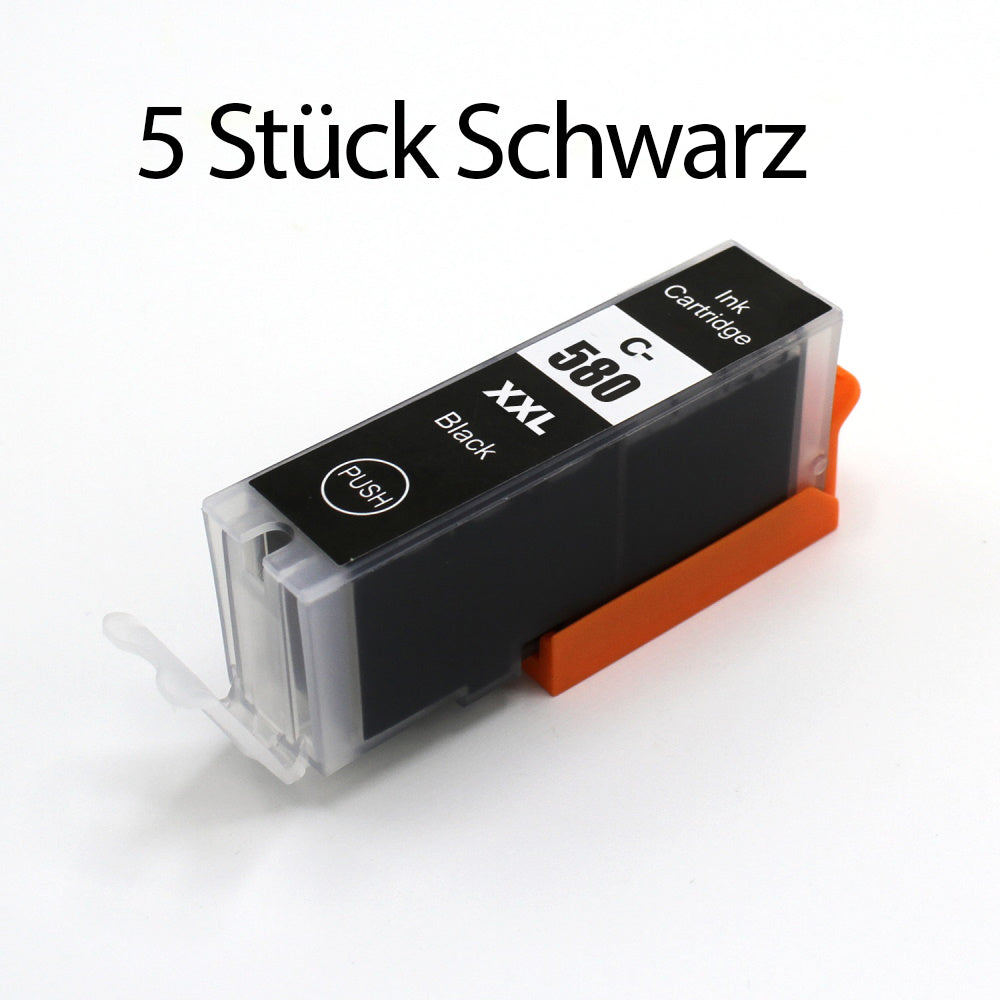 5 Stück KuPri XXL Druckerpatronen für Canon Pixma TS8220 PGI580 Black Schwarz Dick