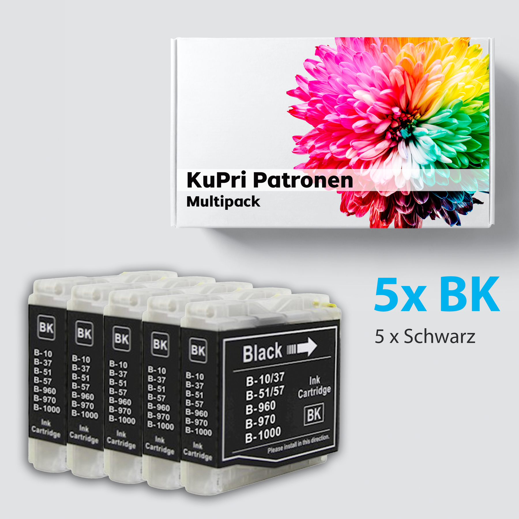 5 Stück KuPri Druckerpatronen B-1000BK XXL für Brother DCP-525C