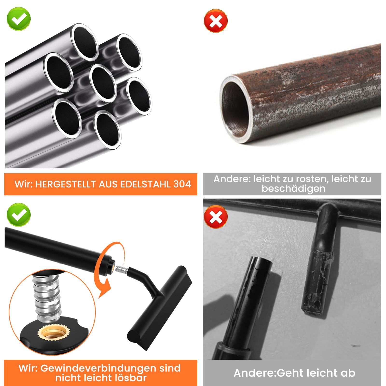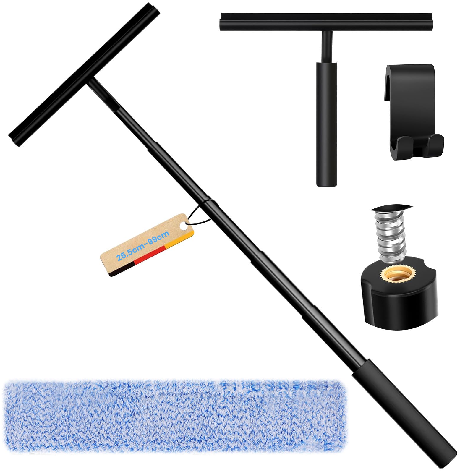 • Vielseitige Anpassungsfähigkeit: Duschabzieher Schwarz kann die Länge von 23,5 cm auf 97 cm verlängert werden, was es Ihnen ermöglichst, problemlos auch schwer erreichbare Stellen zu reinigen. Egal ob kleine Fenster, große Glasflächen oder andere Oberflächen, unser Abzieher Dusche kann überall problemlos eingesetzt werden, ohne dass zusätzliche Werkzeuge benötigt werden.