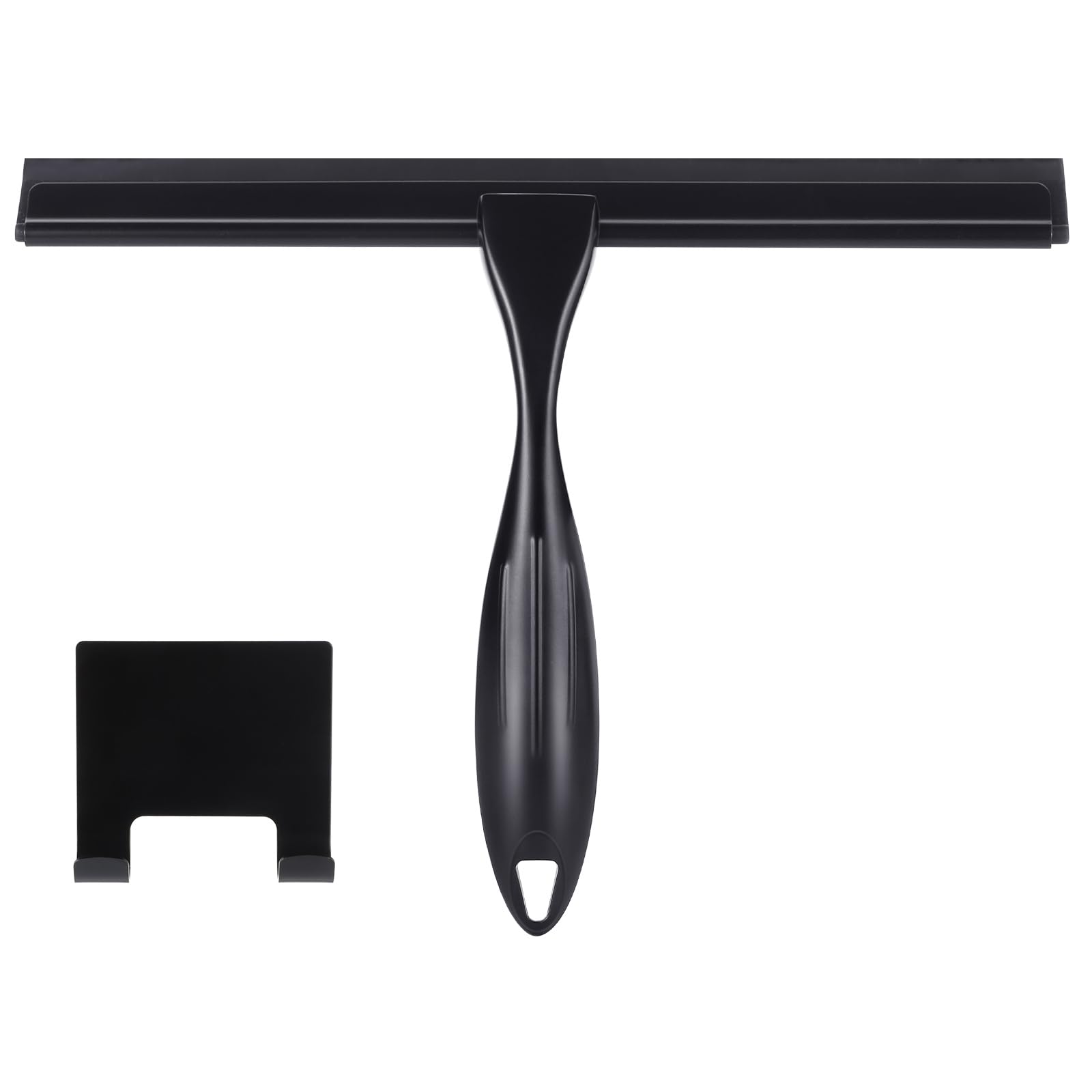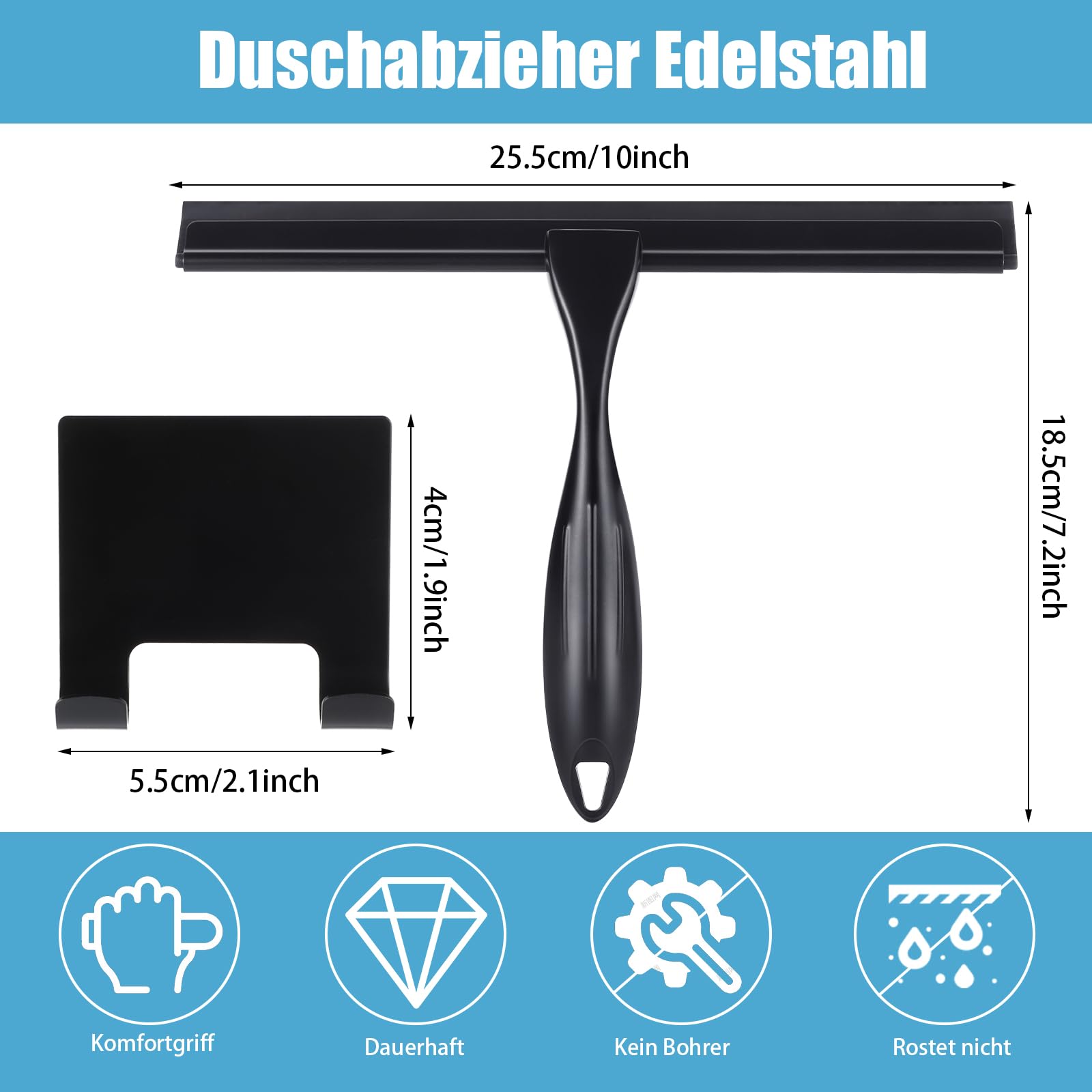 Duschabzieher Schwarz, 10 Zoll Abzieher Dusche Edelstahl Fensterabzieher für Glastür Dusche mit Halterung, Fensterwischer für Badezimmer Fenster Spiegel Autoglas