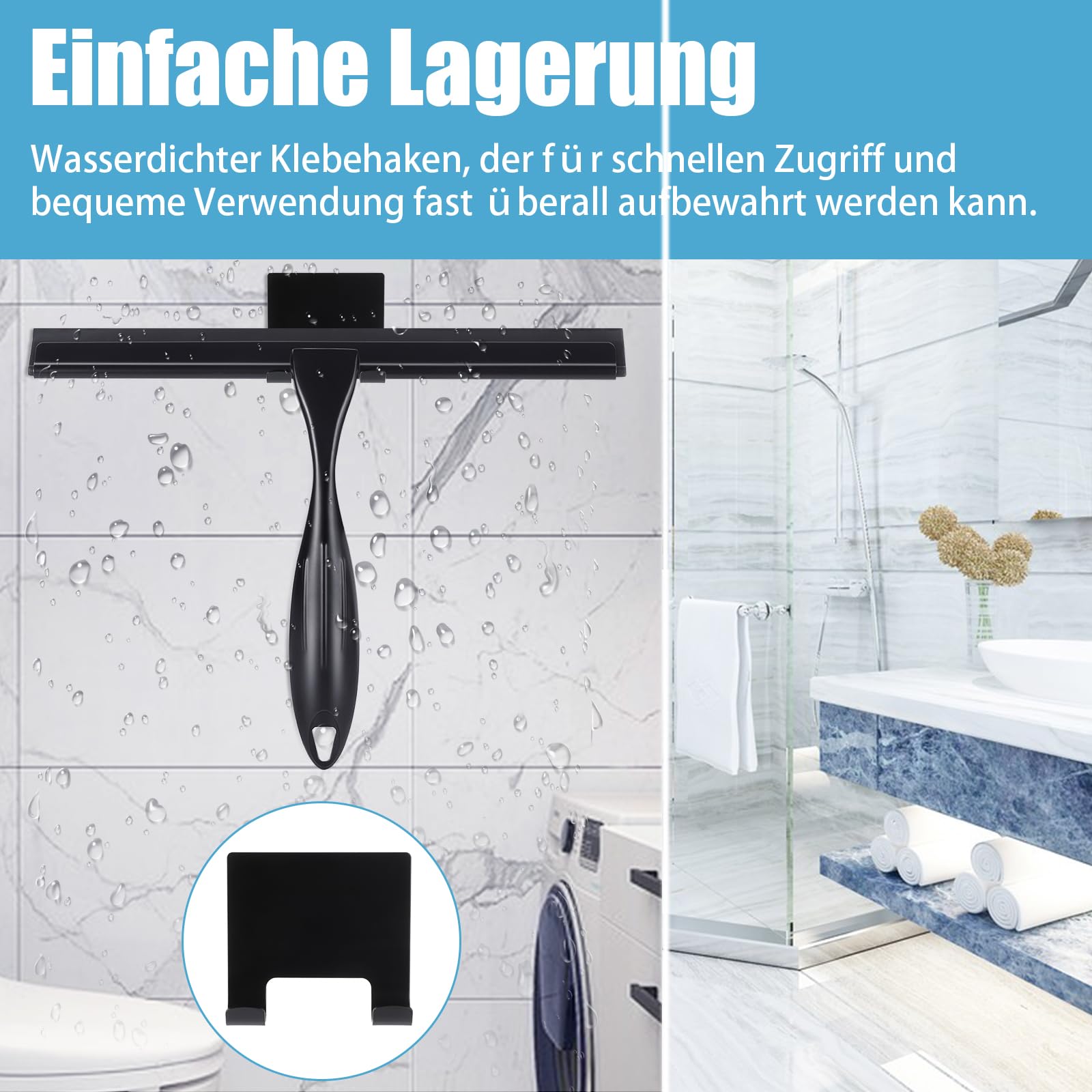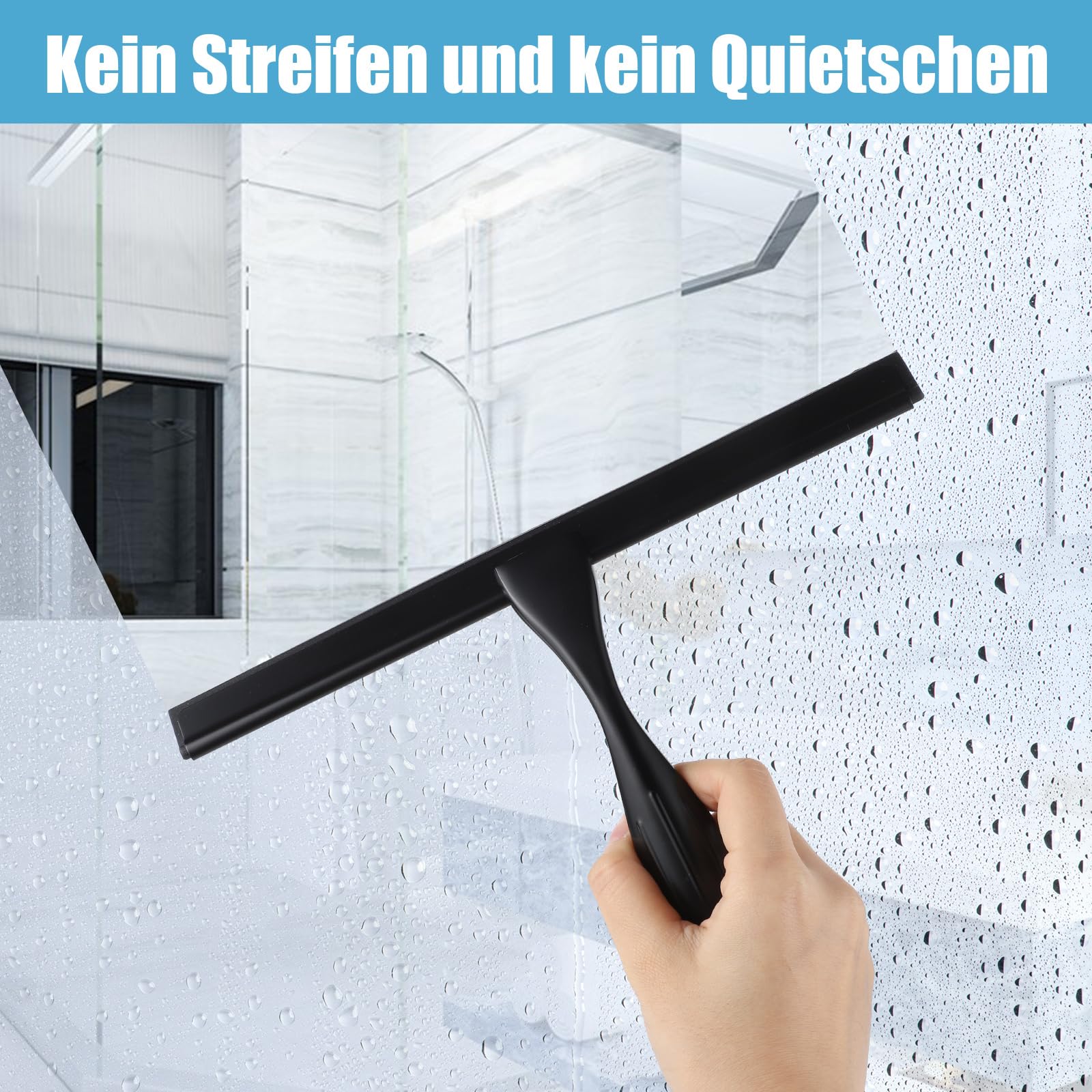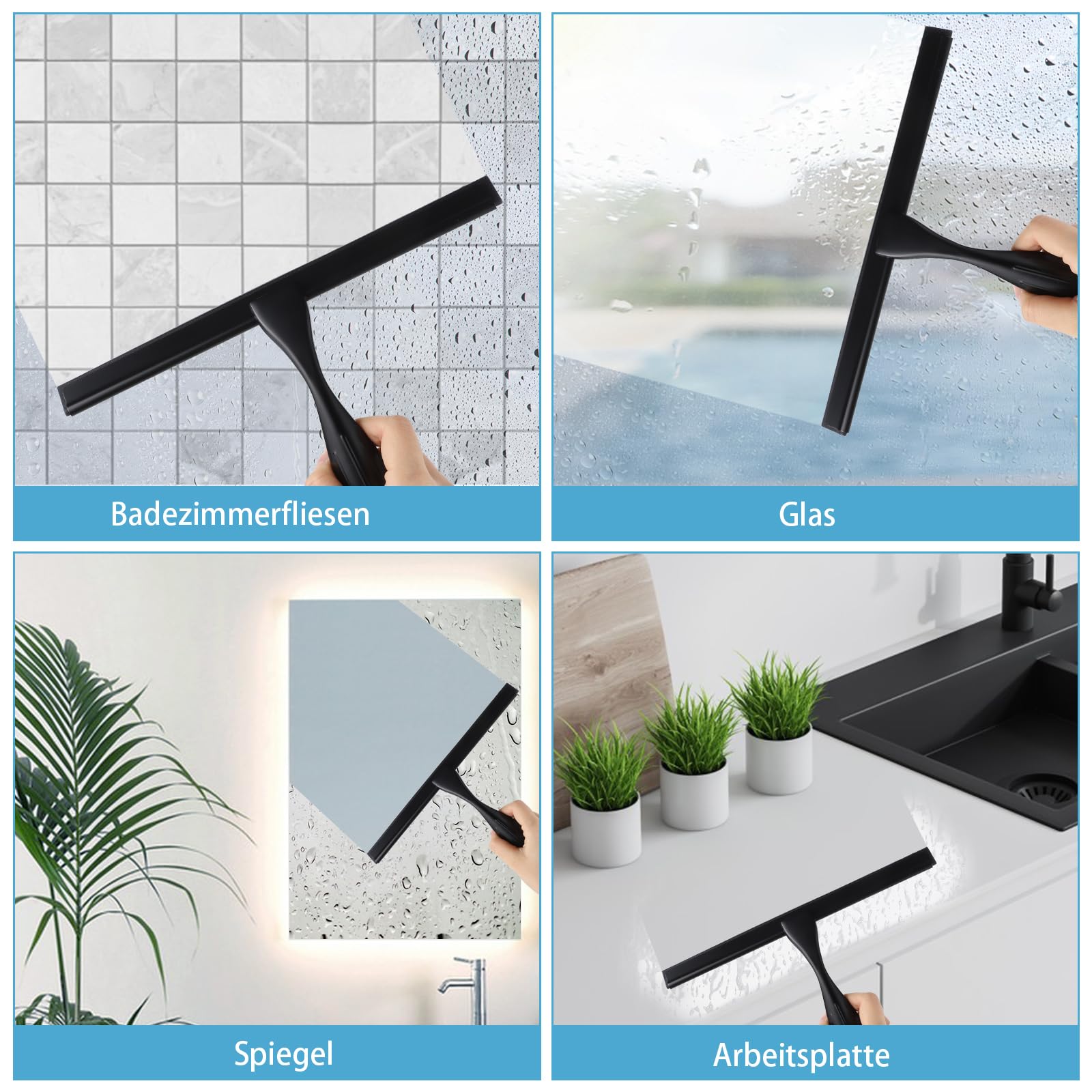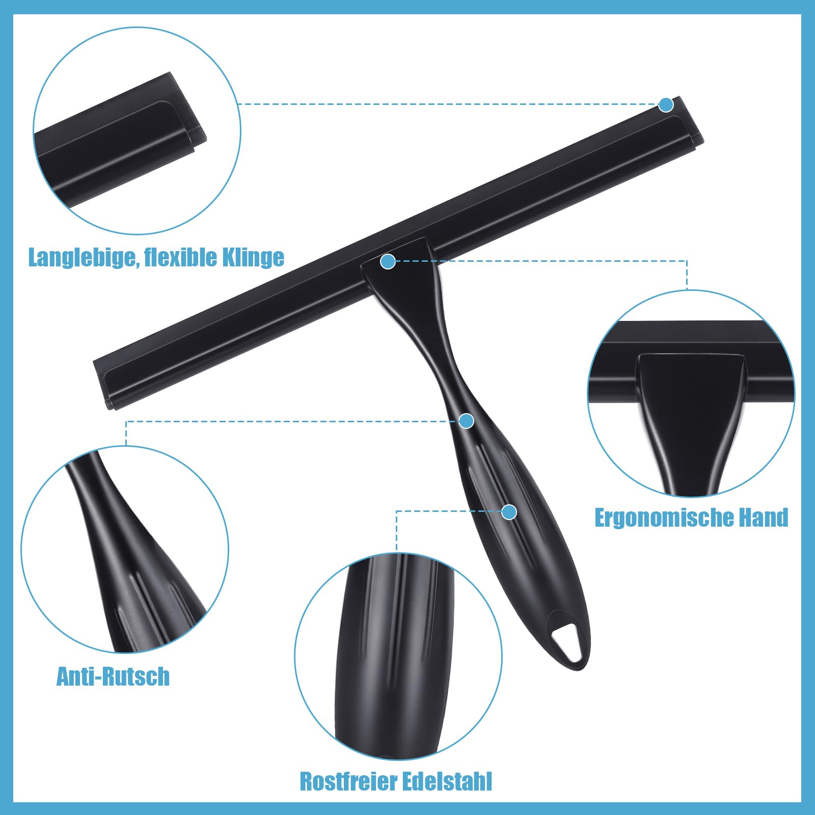 • 【Effektive Reinigung】Mit diesem Abzieher Dusche können Sie die Wasserflecken und Seifenschaum auf der Spiegel, Fenster und Duschtür schnell und einfach reinigen, um die Bildung von Flecken und Ablagerungen auf Glasoberflächen zu verhindern. Einfach durch Hin- und Herschaben mit einem Fensterabzieher kann die Glasoberfläche sauber und streifenfrei werden.