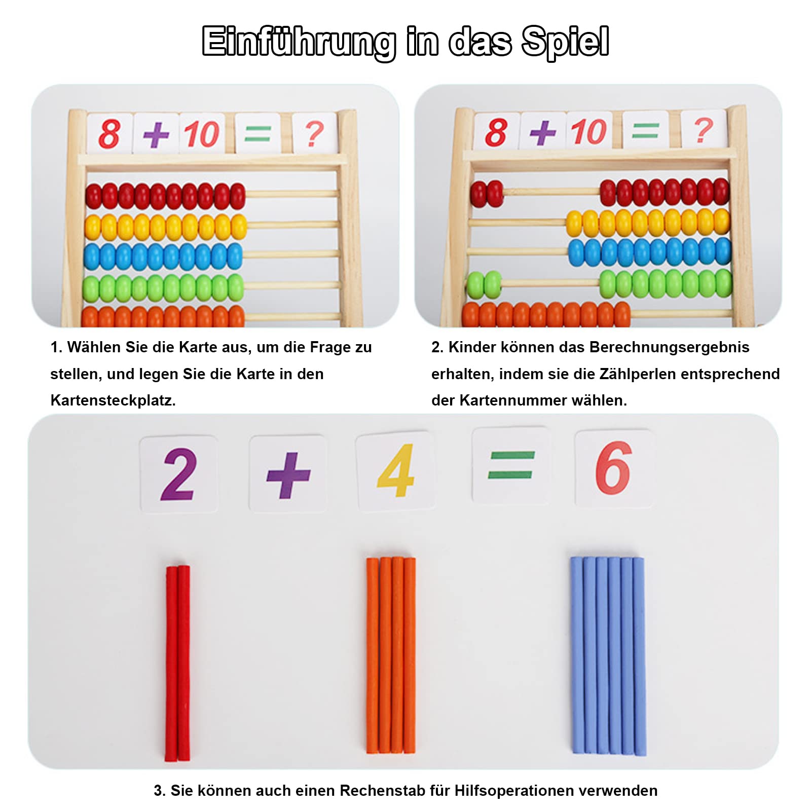 • Verbesserung der mathematischen Fähigkeiten: Der Abakus ist ein klassisches Lernspielzeug, das Kindern helfen kann, grundlegende mathematische Konzepte wie Addition, Subtraktion, Multiplikation und Division zu verstehen und zu üben und das Interesse der Kinder an Mathematik und Lernfortschritt zu fördern.