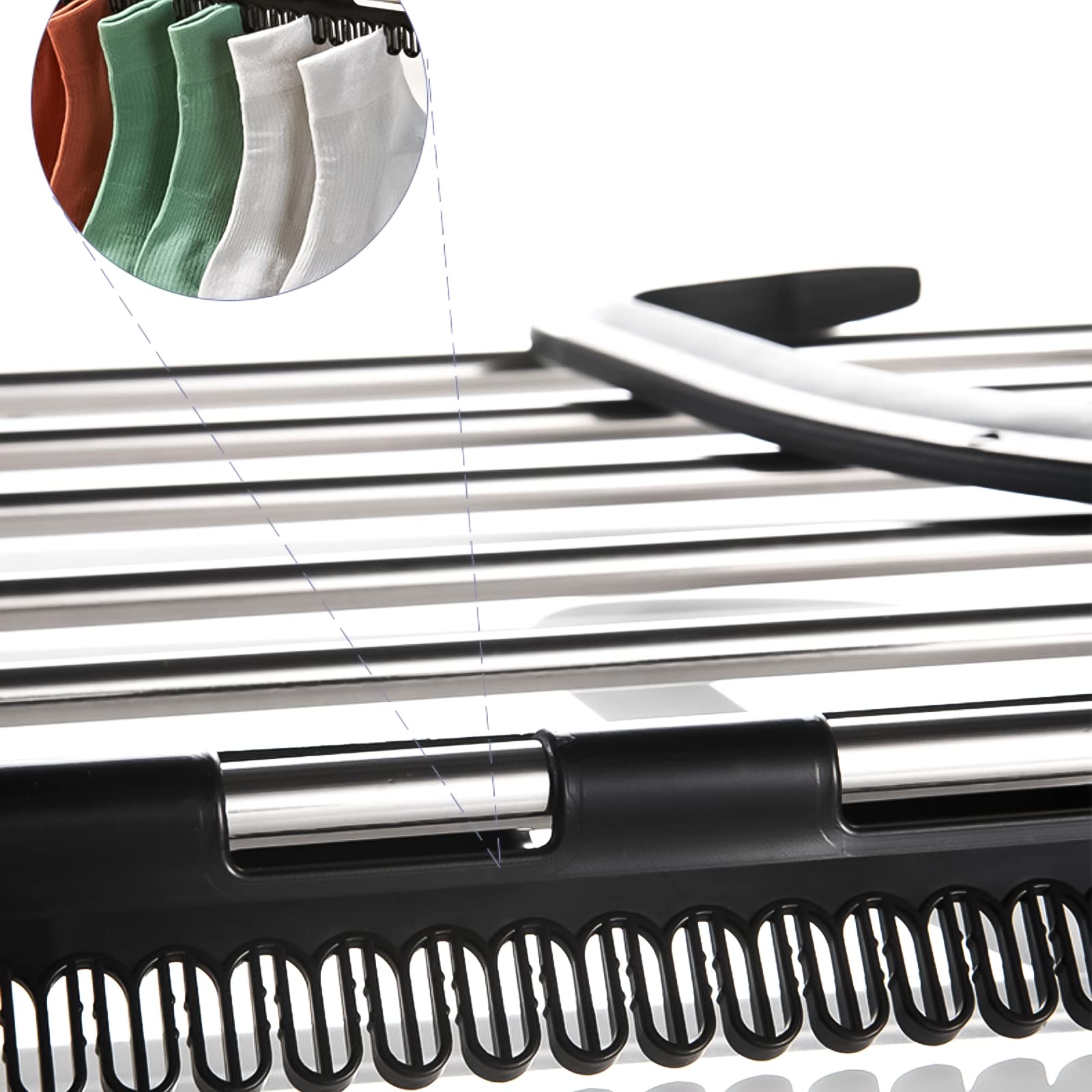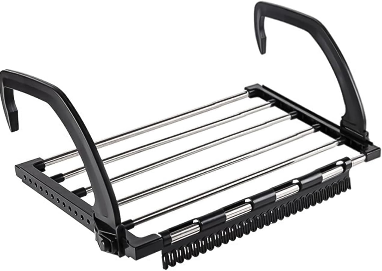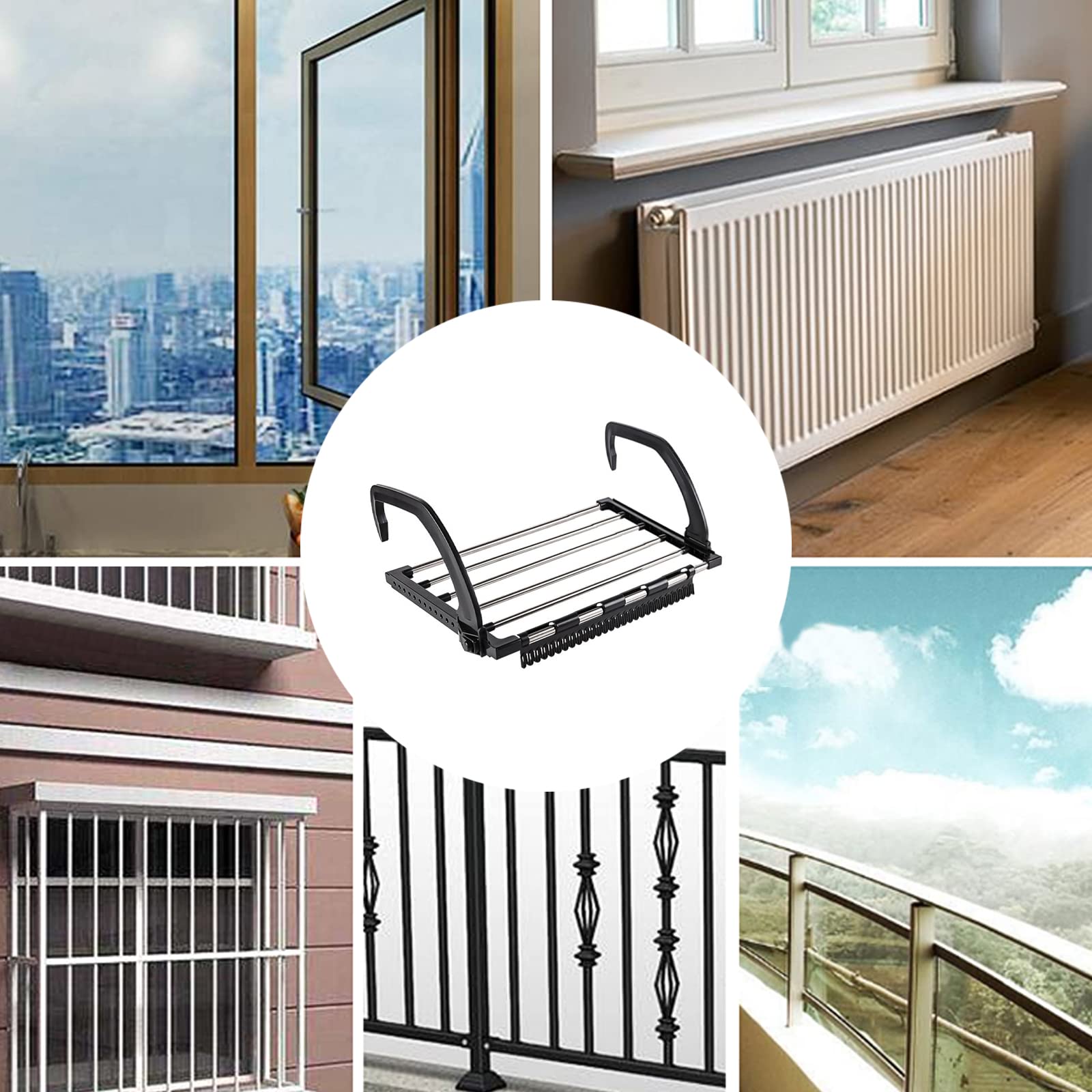 • Breite Anwendung: Sie können Trockengestelle an vielen Stellen installieren, wie Balkongeländer, Flachheizungen, Fensterbänke, Badewannen und sogar Türen. Es ist sehr geeignet zum Aufhängen von Kleidung, Unterwäsche, Socken, etc.