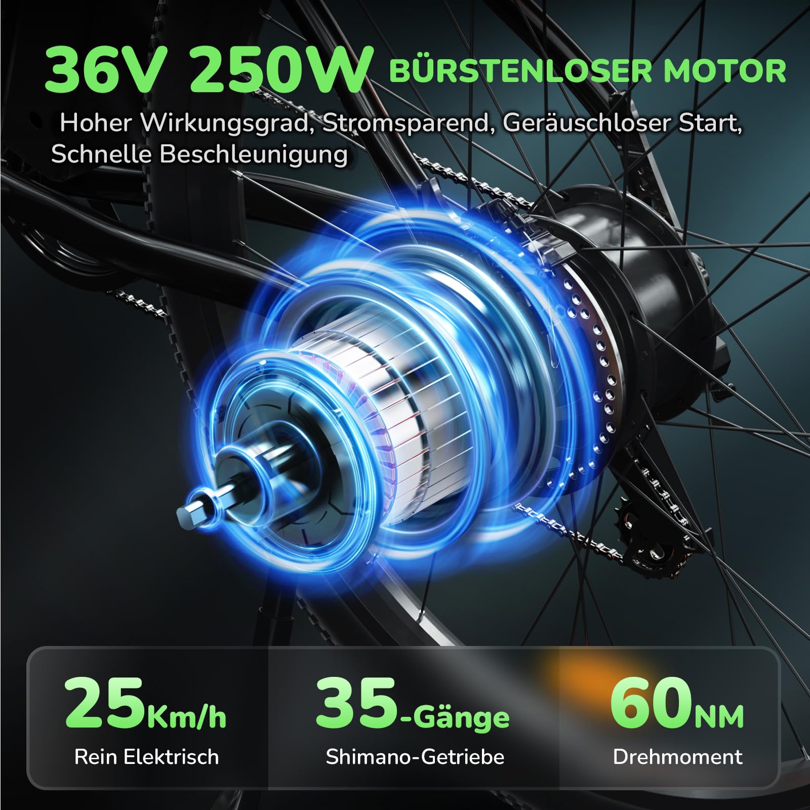 - ✅【𝐇𝐨𝐜𝐡𝐰𝐞𝐫𝐭𝐢𝐠𝐞 𝐌𝐨𝐭𝐨𝐫𝐞𝐧】Der Motor ist die wichtigste Kernkomponente des E-Bikes, und seine Leistung wirkt sich direkt auf das Fahrerlebnis aus. Dieses M10 E-Bike ist mit einem 𝟑𝟔𝐕 𝟐𝟓𝟎𝐖 Unibody-Motor ausgestattet(𝗦𝗽𝗶𝘁𝘇𝗲 35O), der eine gute Steigfähigkeit, ein maximales Drehmoment von 𝟔𝟎𝐍-𝐦 und eine Wasserdichtigkeit von 𝐈𝐏𝐗𝟓 aufweist. Er hat einen reibungslosen Antrieb ohne Stottern beim Starten, erzeugt wenig oder keine ohrenbetäubenden Geräusche während der Fahrt und hat eine lange Lebensdauer und ist nicht leicht zu beschädigen, was ein gutes Fahrerlebnis gewährleistet.