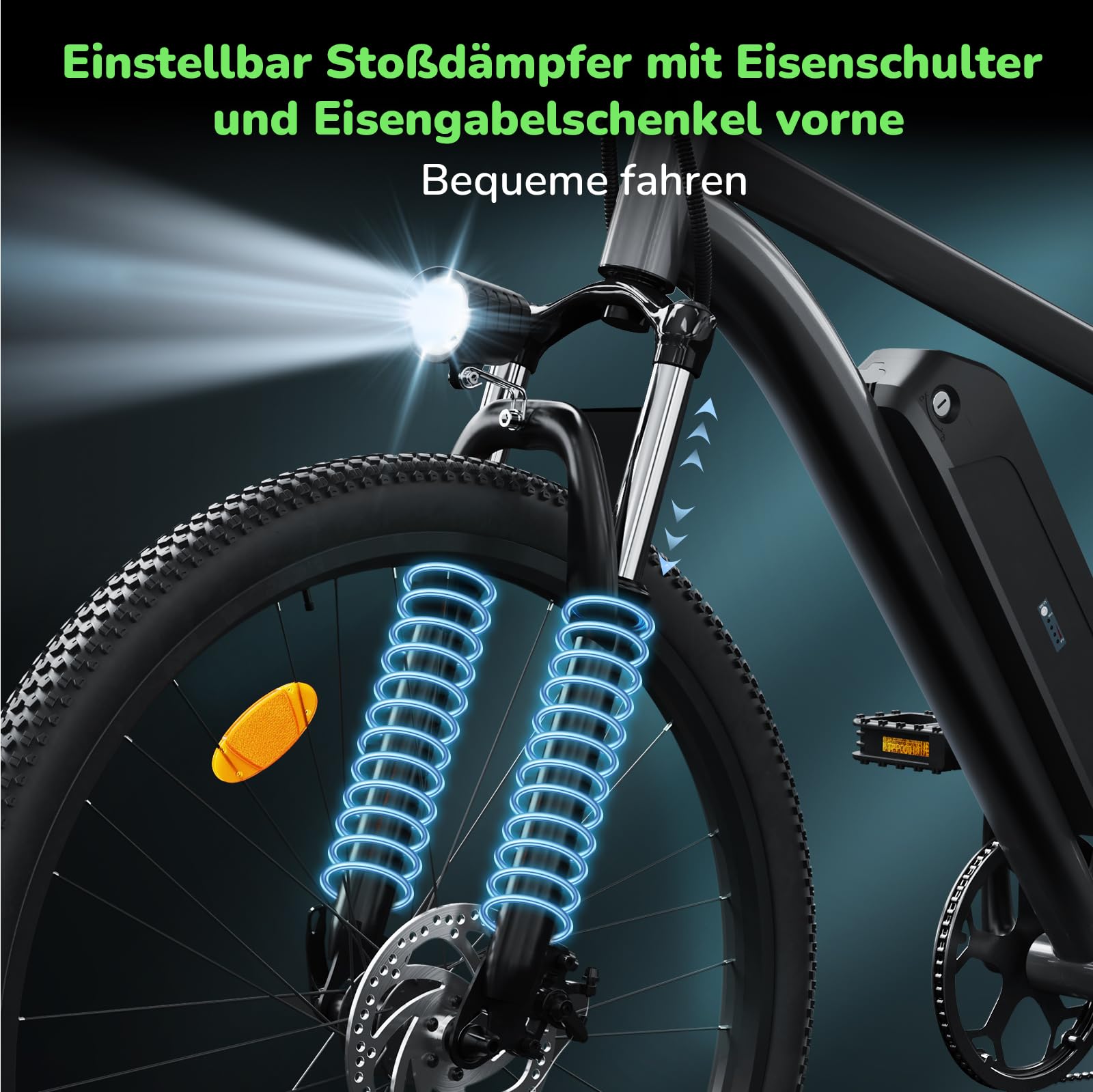 - 🚲【𝐃𝐢𝐞 𝐅𝐫𝐞𝐮𝐝𝐞 𝐚𝐦 𝐑𝐞𝐢𝐭𝐞𝐧】Dieses elektrische Mountainbike ist mit einer professionellen 𝟑𝟓-𝐆𝐚𝐧𝐠-𝐒𝐜𝐡𝐚𝐥𝐭𝐮𝐧𝐠 ausgestattet, die alle Ihre Geschwindigkeitsanforderungen erfüllt, z. B. bergauf, bergab, beschleunigen, verlangsamen, gleichmäßige Geschwindigkeit usw. 𝟐𝟔-𝐙𝐨𝐥𝐥-𝐑𝐞𝐢𝐟𝐞𝐧 mit Pannensicherheit sorgen für mehr Haltbarkeit. Hochfeste 𝐆𝐚𝐛𝐞𝐥𝐟𝐞𝐝𝐞𝐫𝐮𝐧𝐠, duale Lichter, 𝐋𝐂𝐃-𝐃𝐢𝐬𝐩𝐥𝐚𝐲, vordere und hintere mechanische Doppelscheibenbremsen machen Ihre Fahrt bequemer, ohne den Spaß am Fahrradfahren zu verlieren.