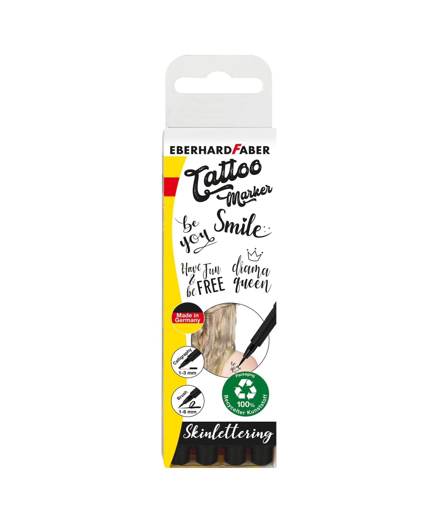 EBERHARD FABER 559506 - Tattoo Stifte Set Skinlettering, 4 Stifte im Kunststoffetui