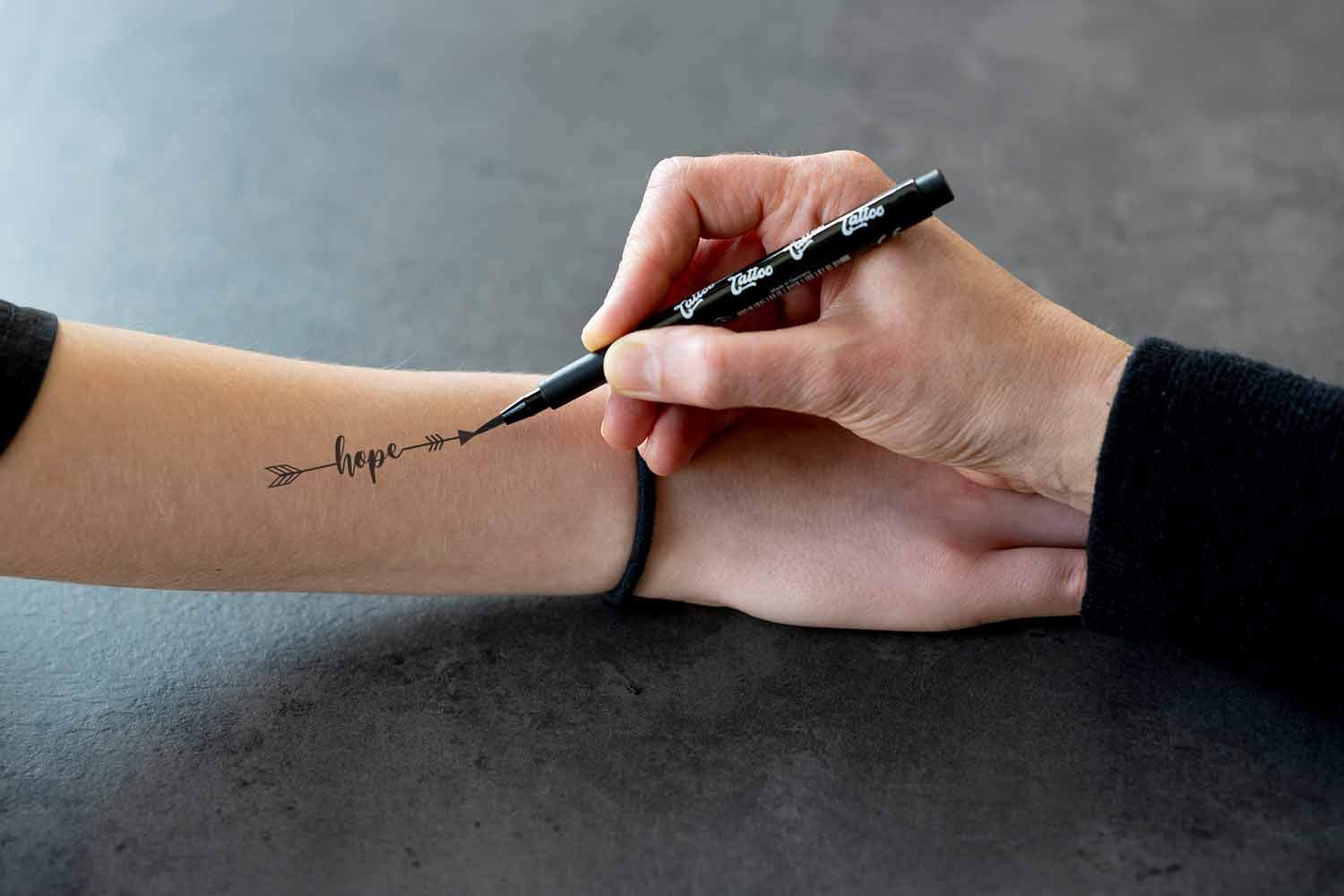 • Trocknungszeit ca. 5 Minuten, Tattoo bleibt bis zu 60 Stunden sichtbar, abwaschbar mit Wasser und Seife, auswaschbar aus den meisten Textilien