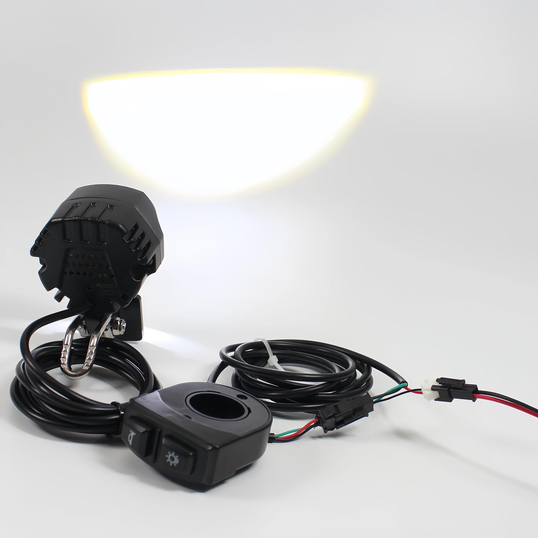 • Einfache Installation: Einfach auf der vorderen Tonplatte montiert. Packung umfasst 1 Scheinwerfer, 1 Schalter und eine optionale Scheinwerferhaltung (mit Ladeteil) für eine schnelle Einrichtung.