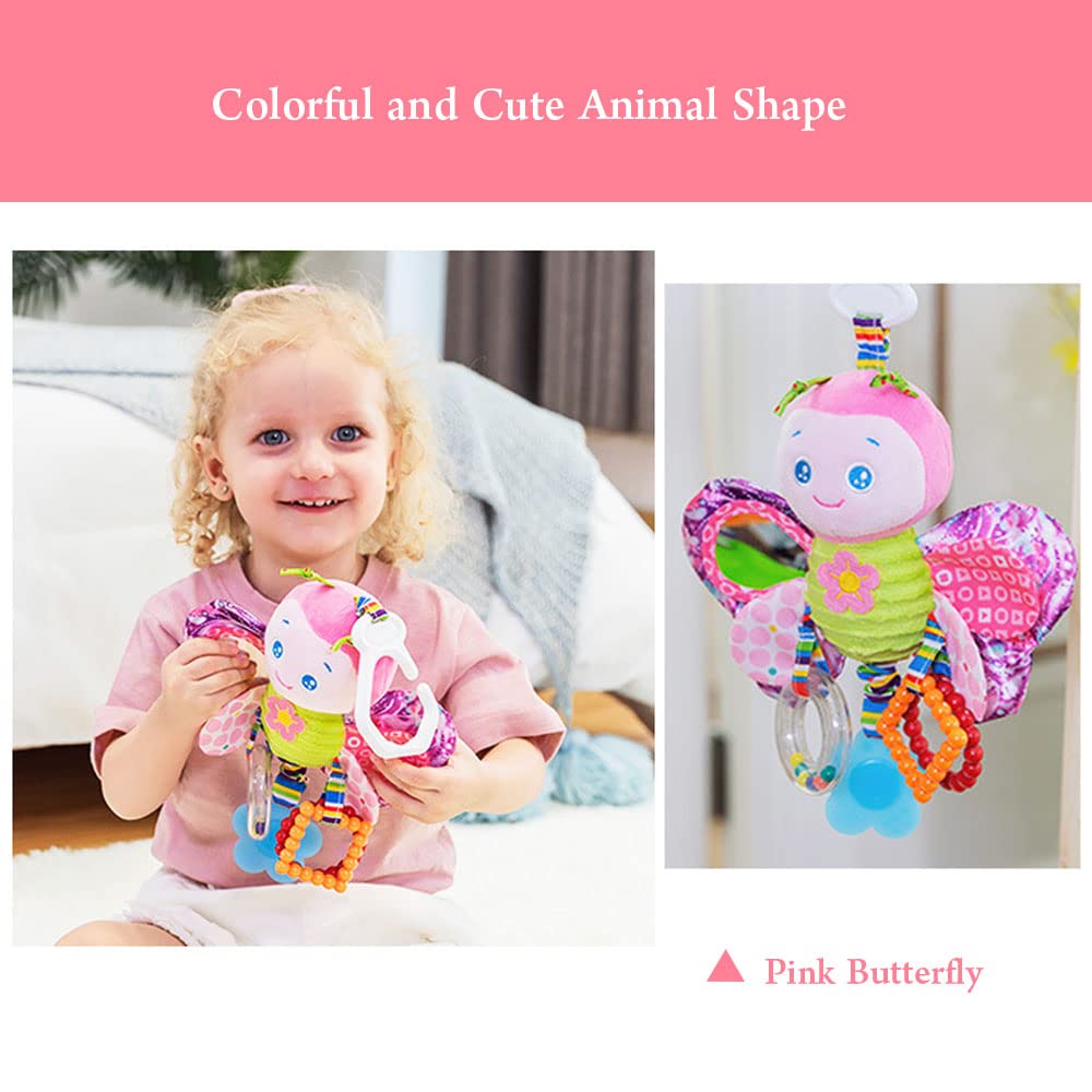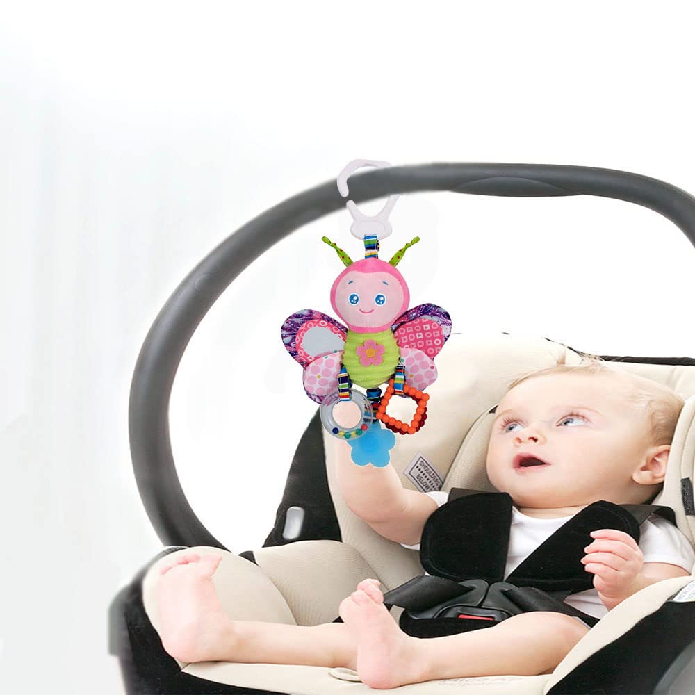 - 🦋【Hängendes Design】Dieses Baby Hängespielzeug hat einen C-Clip Ringhaken aus Kunststoff, der leicht an einem Kinderwagen, Kinderbett oder Autositz aufgehängt werden kann. Es ist sehr bequem zu hängen, sehr einfach zu hängen oder herunterzunehmen.