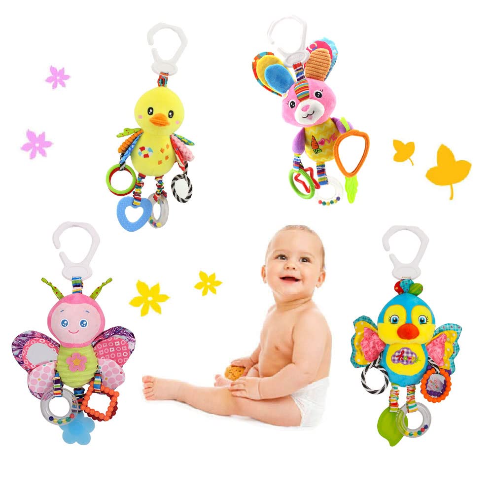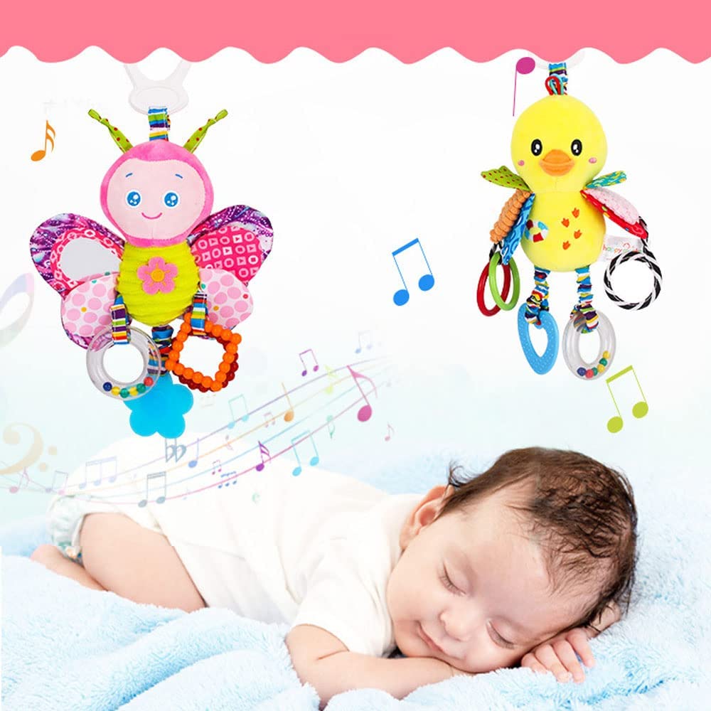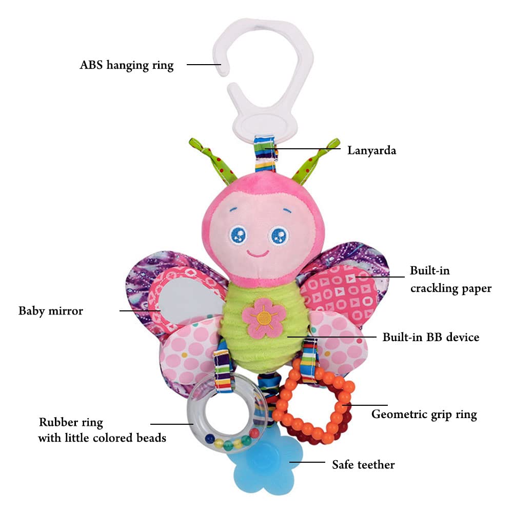 - 🦋【Sicherem und ungiftigem Material】Die Baby Hängen Kinderwagen Kinderbett Spielzeug sind aus Polyester mit weicher PP-Baumwollfüllung hergestellt sind schadstofffrei, BPA-frei, Keine Fluoreszenz, kein eigenartiger Geruch, für Babys kein Schaden. Softem und komfortabel, geeignet für Kleinstkinder und Babys. Hinweis: Diese Rasseln spielen keinen Musikton, sie können zu Klingeltönen verwackeln, es wird ein Geräusch beim Verwackeln oder Drücken erzeugt, was dazu beiträgt, dass das Baby besser hört.