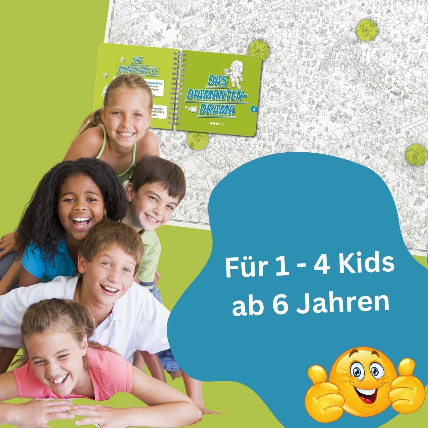 - 👨‍👩‍👧‍👦 Um diese Fälle aufzuklären, ermittelt ihr gemeinsam im Team. Ihr werdet Hinweisen nachgehen, Rätsel lösen und Verdächtige verfolgen – genau wie echte Detektive!