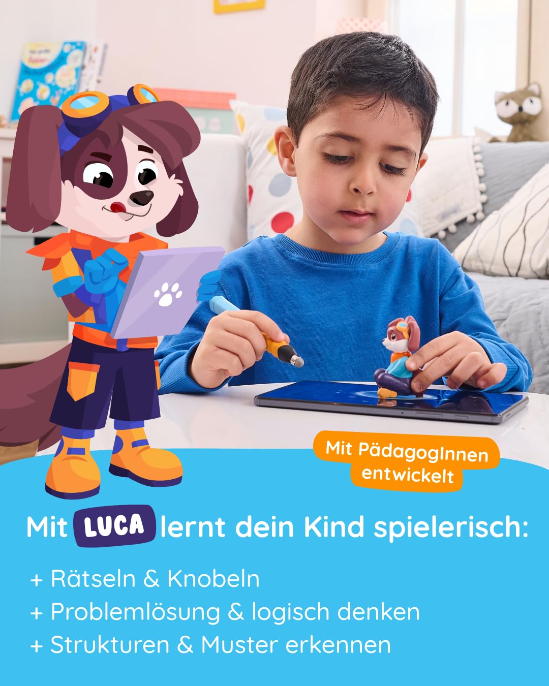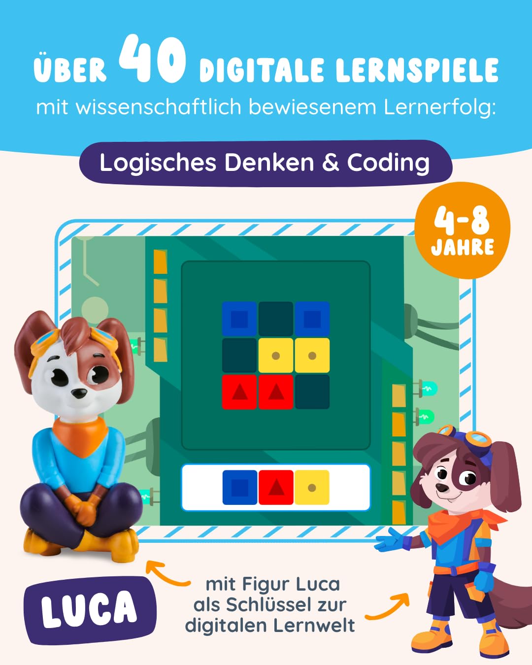 • ✔️ SPIELERISCH LERNEN - Ganz gleich ob erste Rätsel- & Knobelaufgaben oder Strukturen & Muster erkennen - Mit dem Hund Luka von EDURINO den “Computer Planeten” erforschen und spielerisch erstes Coding & logisches Denken erlernen.