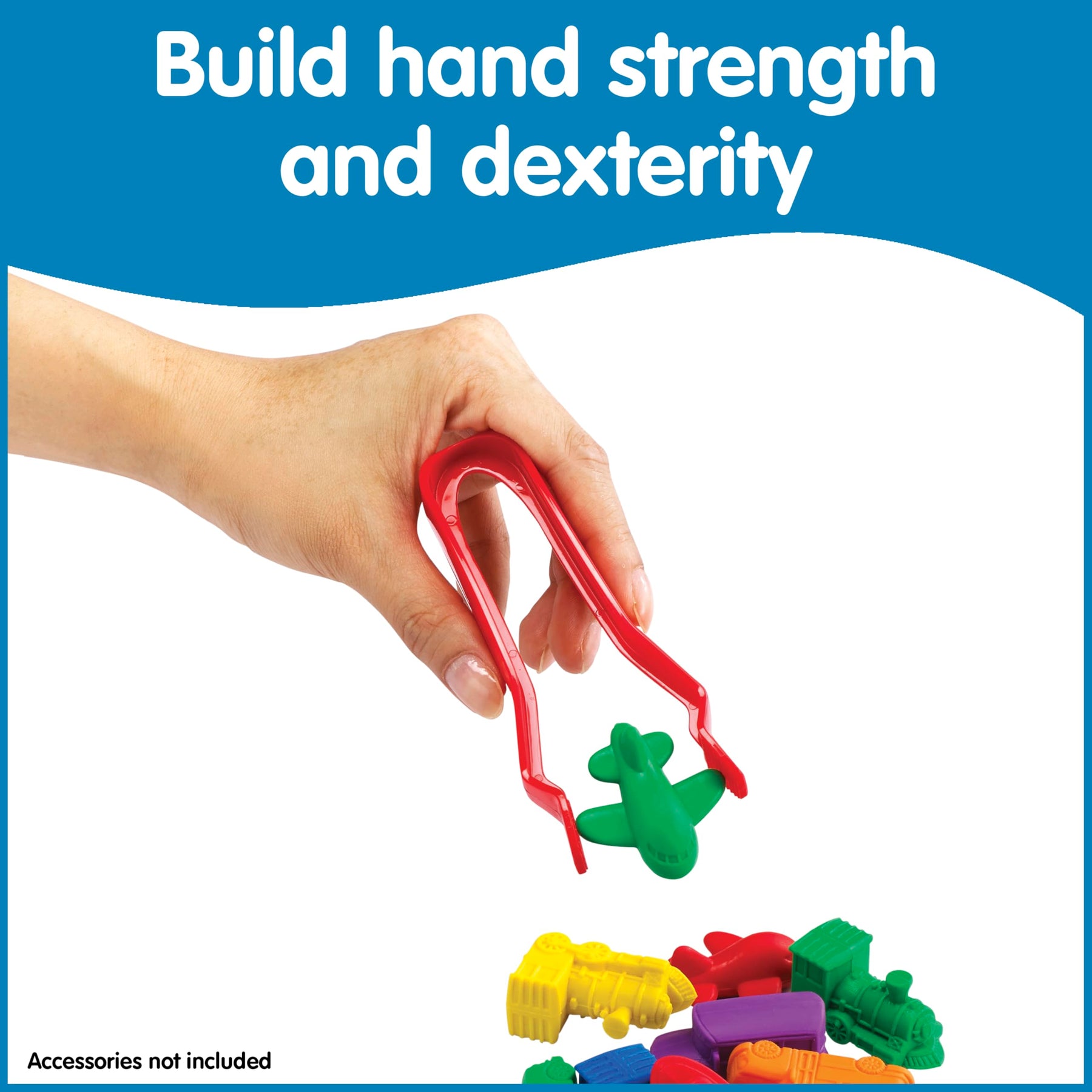 Einzelheiten: Stärkt den Zangengriff beim Schreiben und hilft beim Zählen und beim Sortieren mit diesen feinmotorischen Pinzetten und Zangen für Kinder! Dieses Kinderzangenset enthält 12 riesige Kinderpinzetten aus Kunststoff in den Farben blau, grün, rot, gelb, orange und lila. Diese Jumbo-Pinzette für Kinder ist ideal für Kinder ab 18 Monaten und liegt gut in der Hand. Sie stärken den Zangengriff, um die Feinmotorik und die Schreibfähigkeiten der Kinder zu entwickeln. Mit einer Größe von 11,4 cm L ermöglicht diese Spielpinzette für Kinder das Üben einer wertvollen Fähigkeit. Verwenden Sie diese Pinzette zum Zählen und Sortieren von Spielmaterial in Sortierschalen oder Sinnesbehältern. Dieses feinmotorische Spielzeug ist aus strapazierfähigem Kunststoff gefertigt, wodurch sich das Set ideal für alle Lernumgebungen eignet.