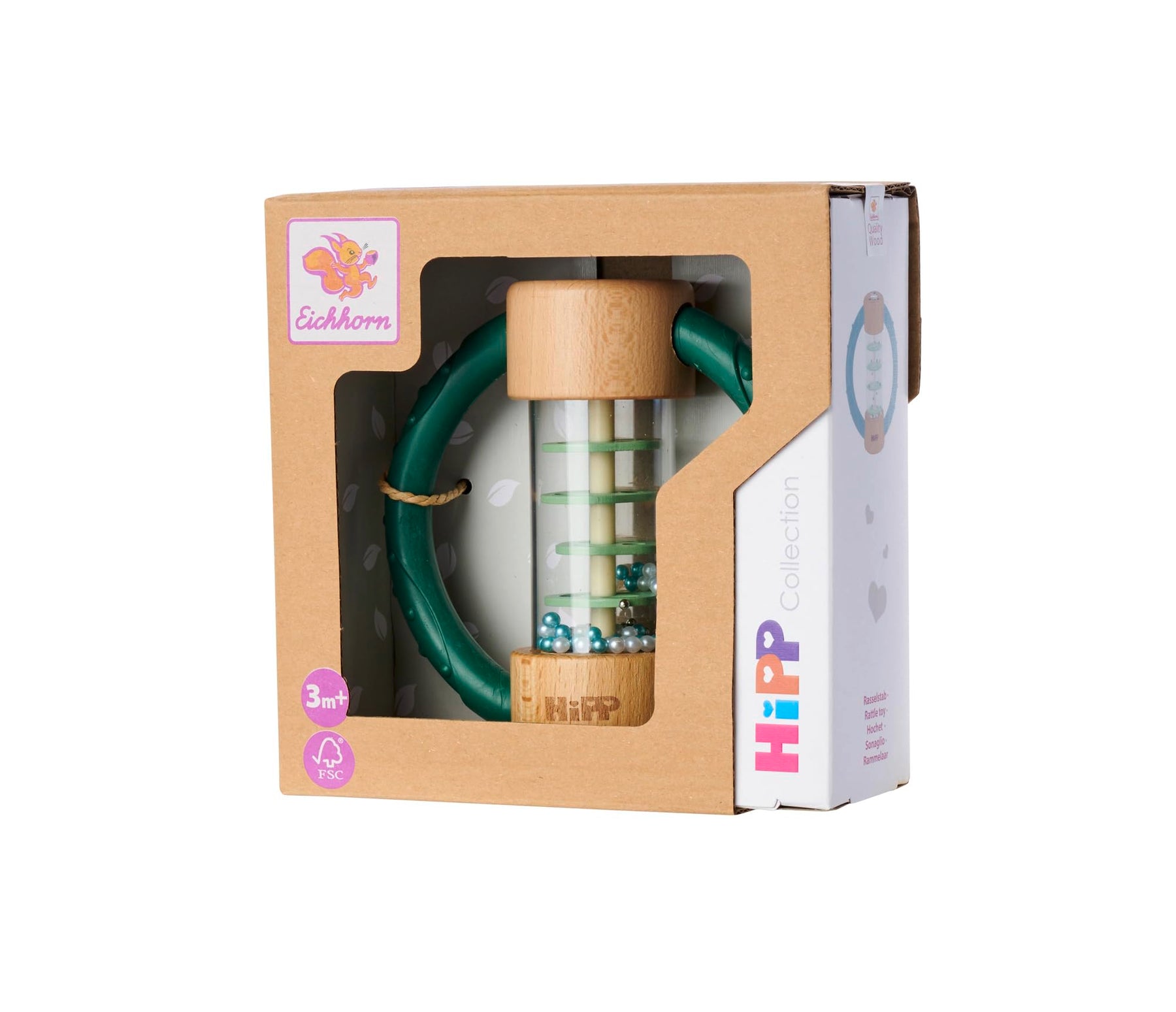 Der hochwertige Eichhorn HiPP Collection Rasselstab aus Buchenholz hat unterschiedliche haptische Reize. Die Kugeln im Inneren machen Geräusche, wenn der Rassestab geschüttelt wird. Kinder können mit der Neigung experimentieren und so die Lautstärke und die Geschwindigkeit der Kugeln beeinflussen. Für die Herstellung des Eichhorn Rasselstabs wird ausschließlich FSC® 100% Holz aus nachhaltiger Forstwirtschaft verwendet. Für Babys ab drei Monaten geeignet.