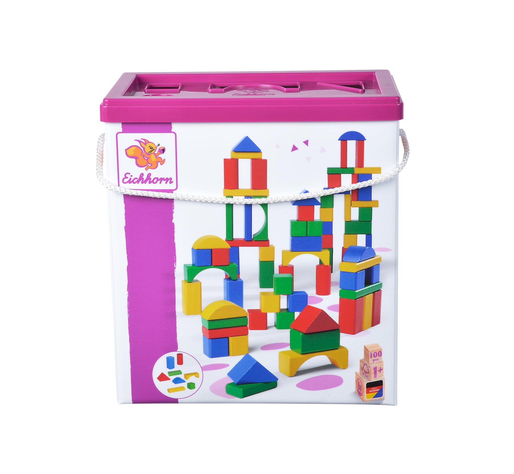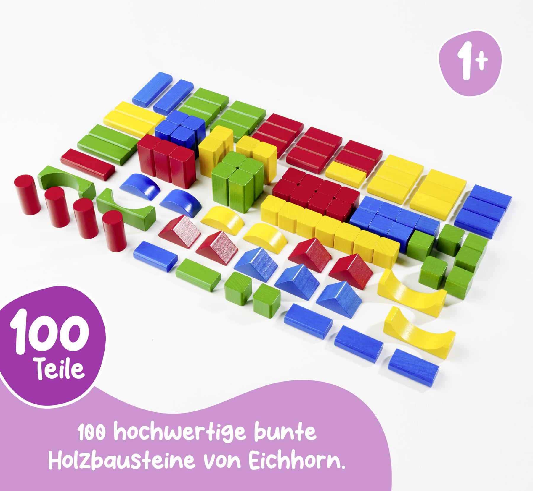 Eichhorn 100010171 100 bunte Holzbausteine in der Aufbewahrungsbox mit Kordel und Sortierdeckel, für Kinder ab 1 Jahr