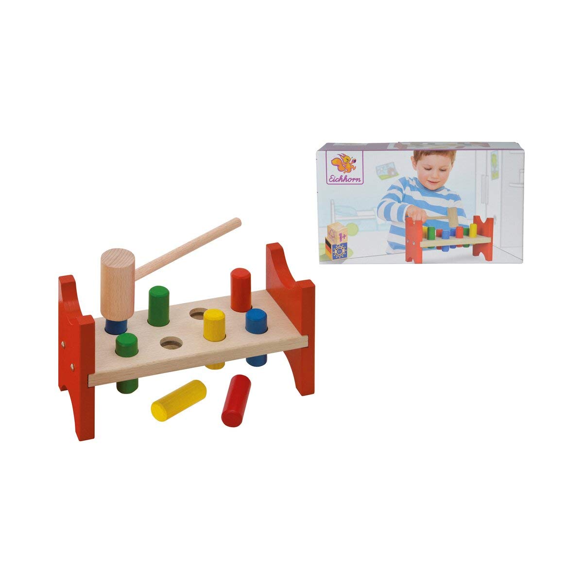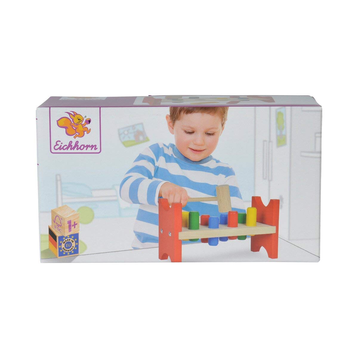 Eichhorn - Klopfbank mit 8 Holzstiften und Hammer, Spielspaß mit nachhaltigem Motorikspielzeug, aus 100% FSC zertifiziertem Buchenholz, ab 1 Jahr
