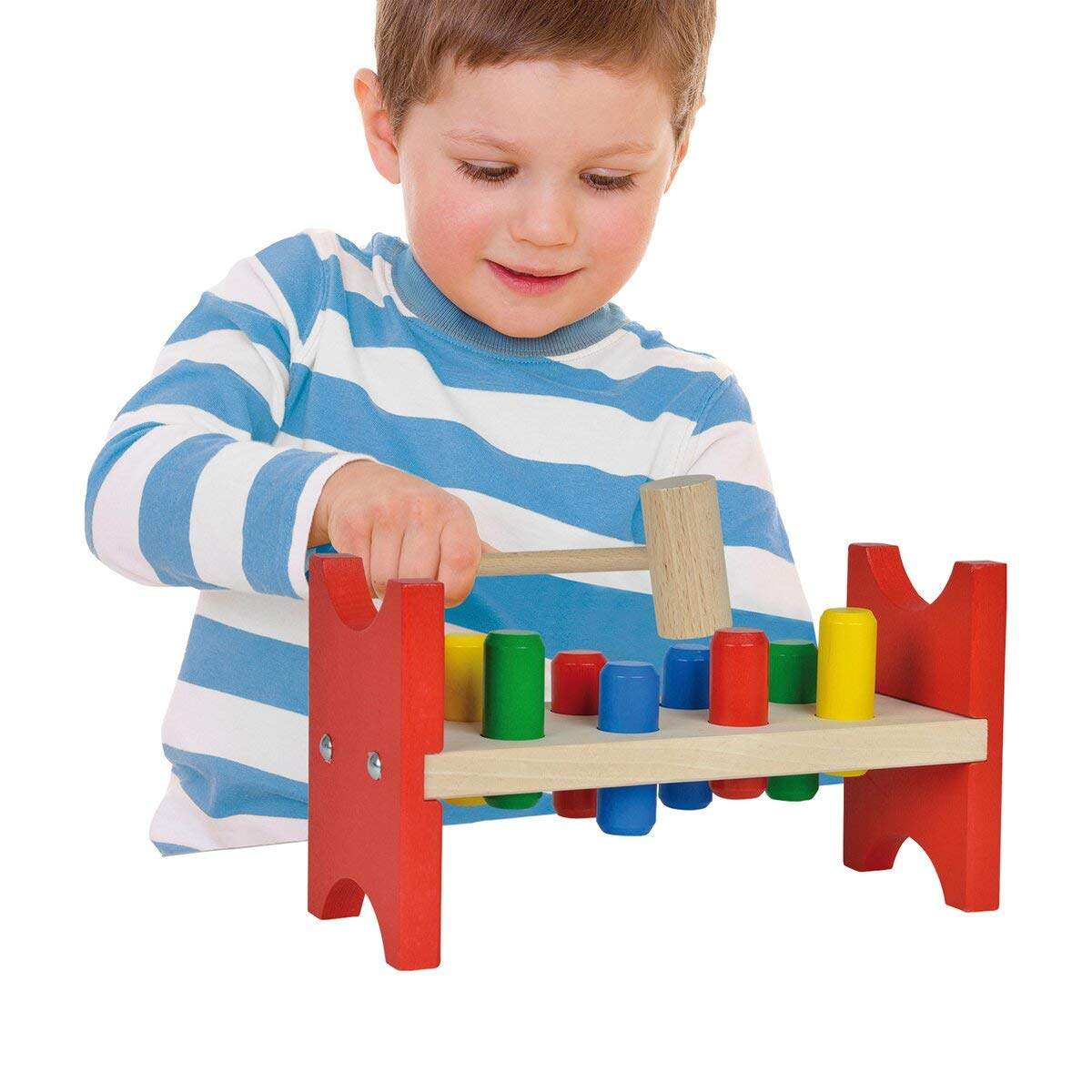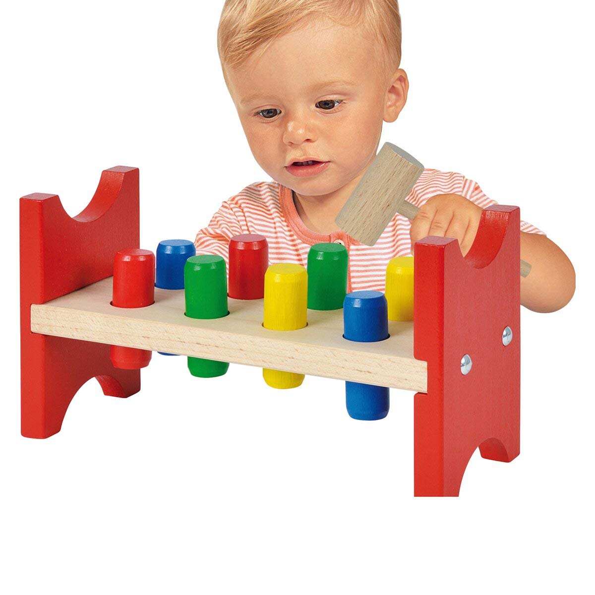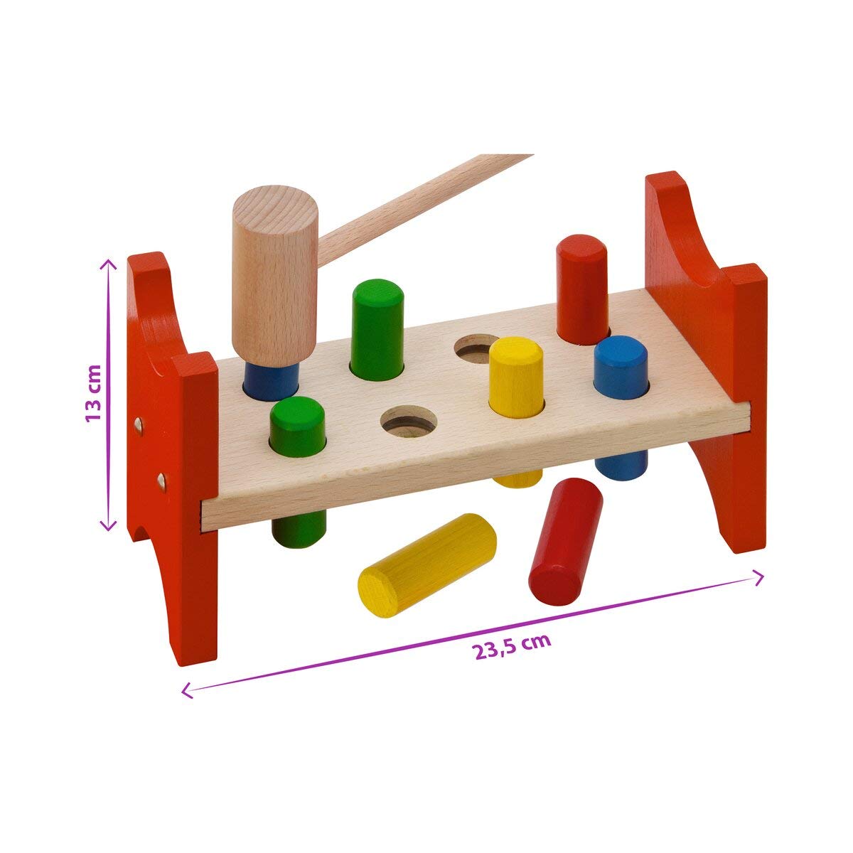 • Fördert Motorik Das Klopfen und Platzieren der Stifte trainiert spielerisch die Hand-Auge-Koordination sowie die Feinmotorik von Kindern ab einem Jahr.