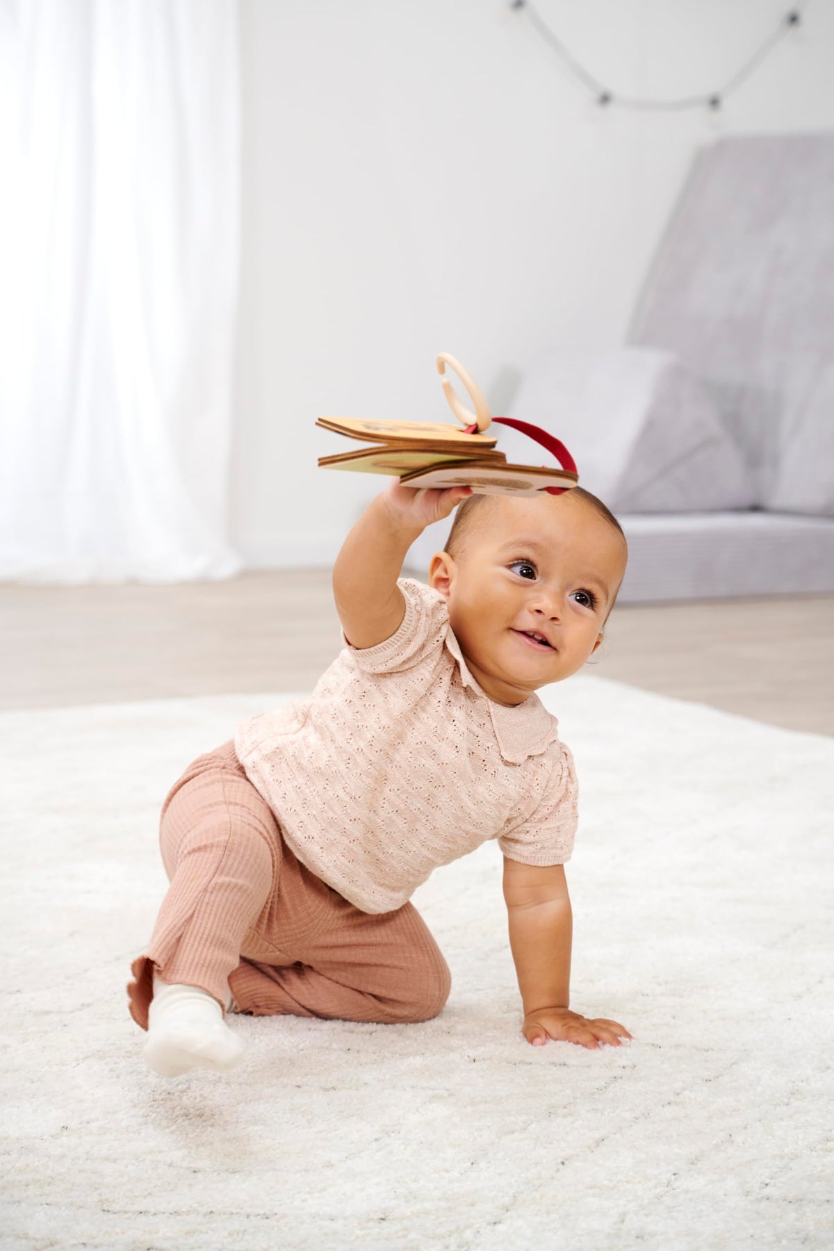 - Praktisches Design – Dank des Aufhängerings lässt sich das Buch sicher an Kinderwagen oder Babyschale befestigen und ist somit auch unterwegs ein idealer Begleiter.