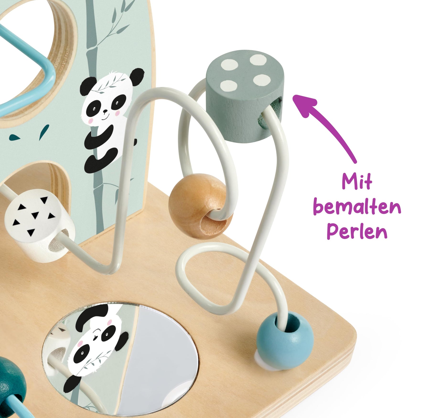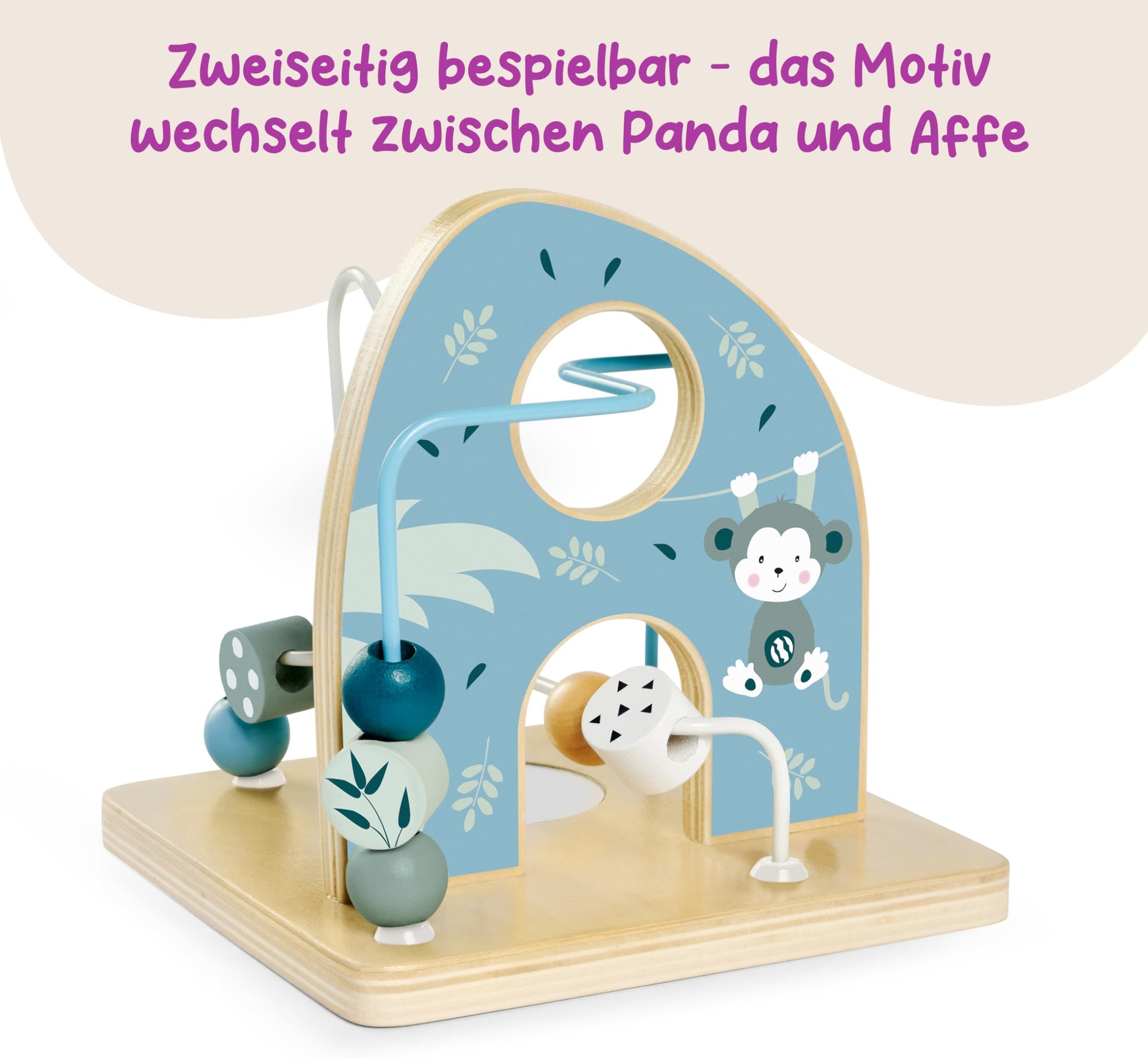 - Fördert Motorik und Wahrnehmung – Beim Schieben der Perlen entlang der Schleifen werden Hand-Auge-Koordination und feinmotorische Fähigkeiten gezielt geschult.