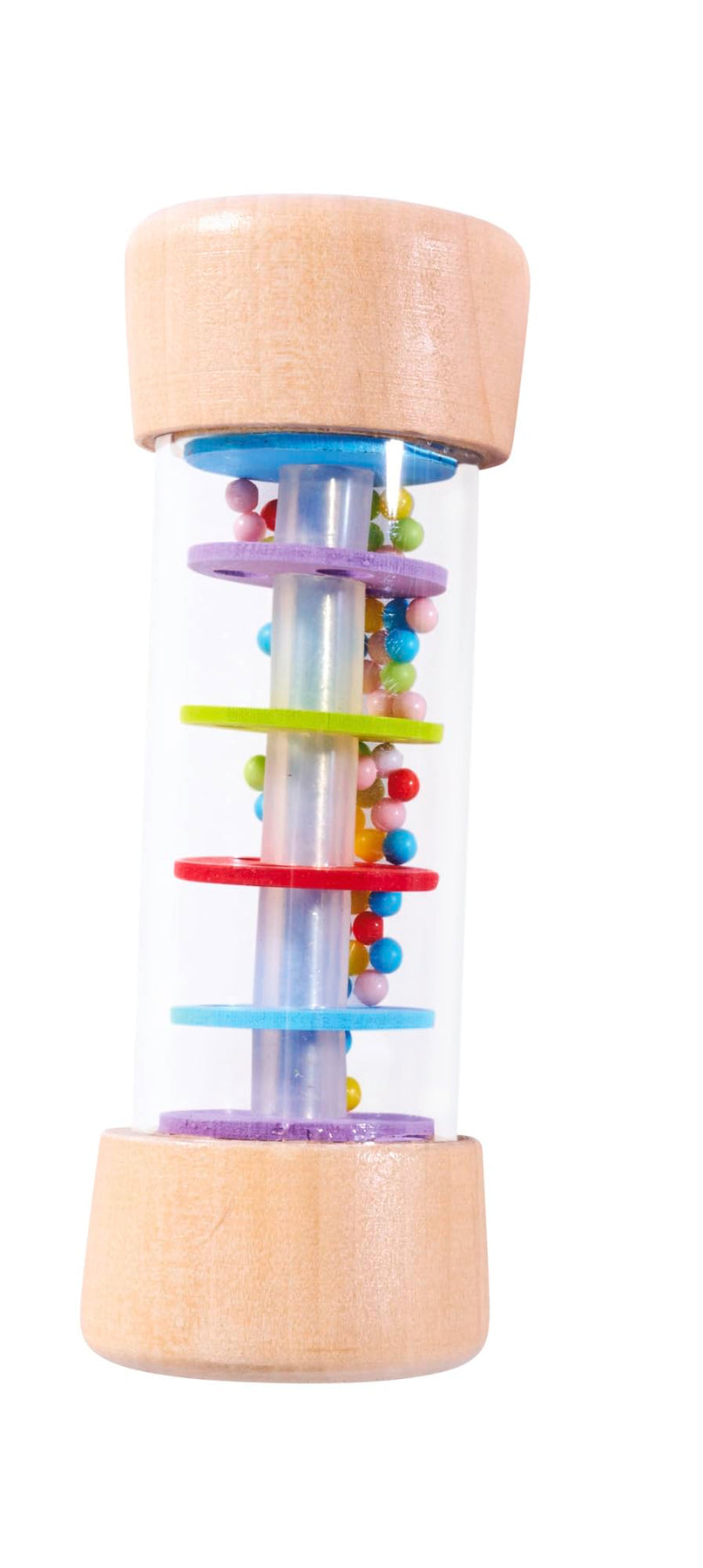 Der Regenstab ist perfekt für Kinderhände. Die Kugeln im Inneren des Regenstabs erzeugen einen Plätscherton, wenn dieser gedreht wird. Kinder können mit der Neigung experimentieren und so die Lautstärke und die Geschwindigkeit der Kugeln beeinflussen. Der Regenstab ist bunt und macht tolle Geräusche. Für Kinder ab 1 Jahr geeignet.