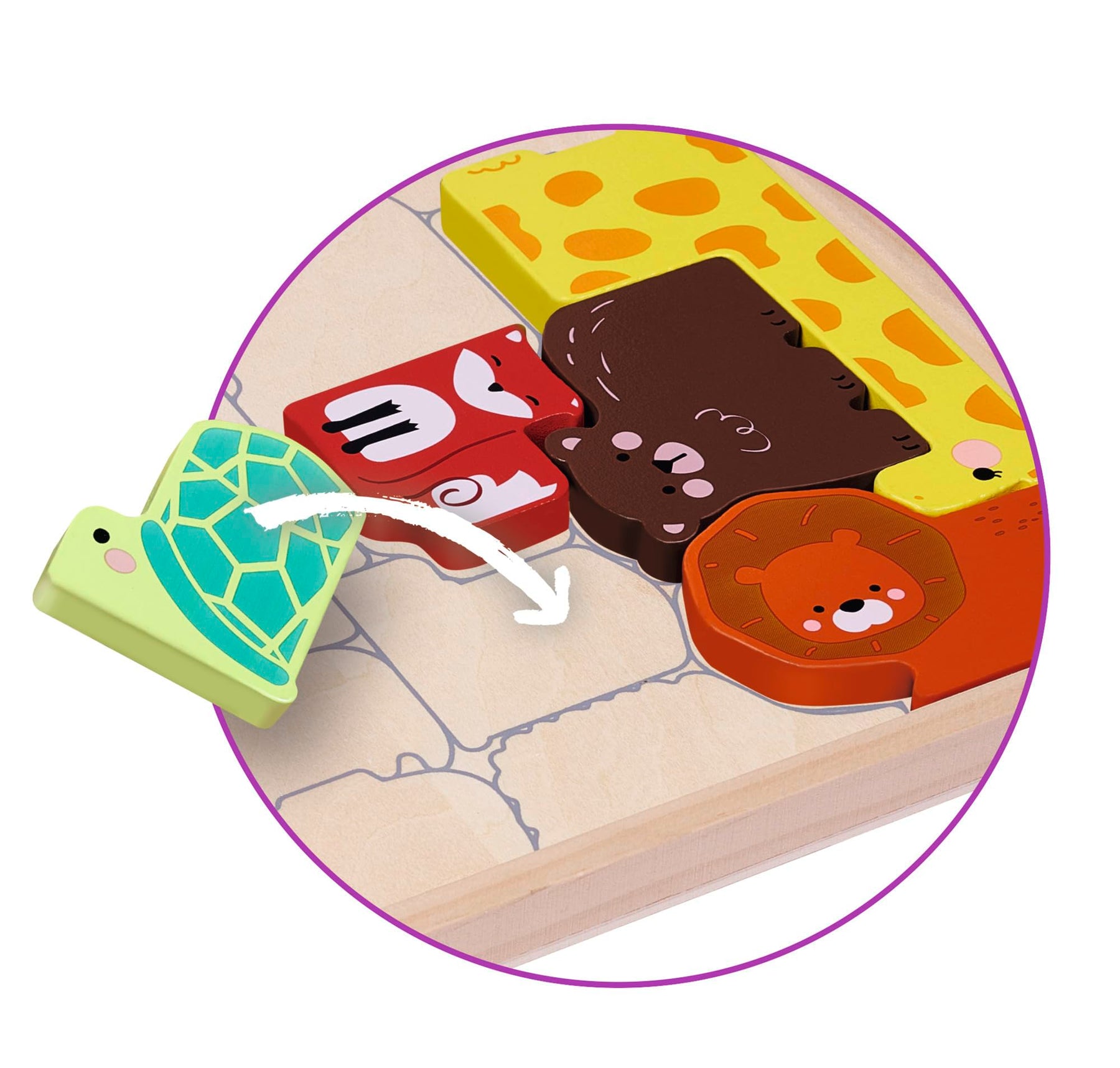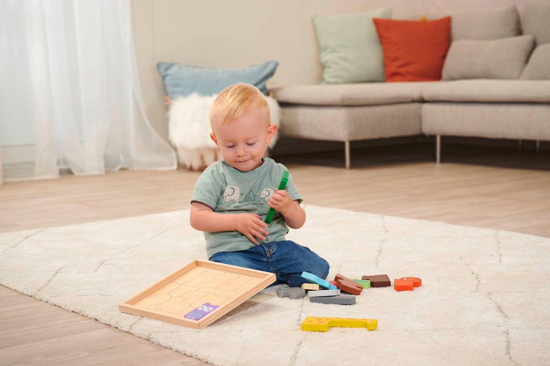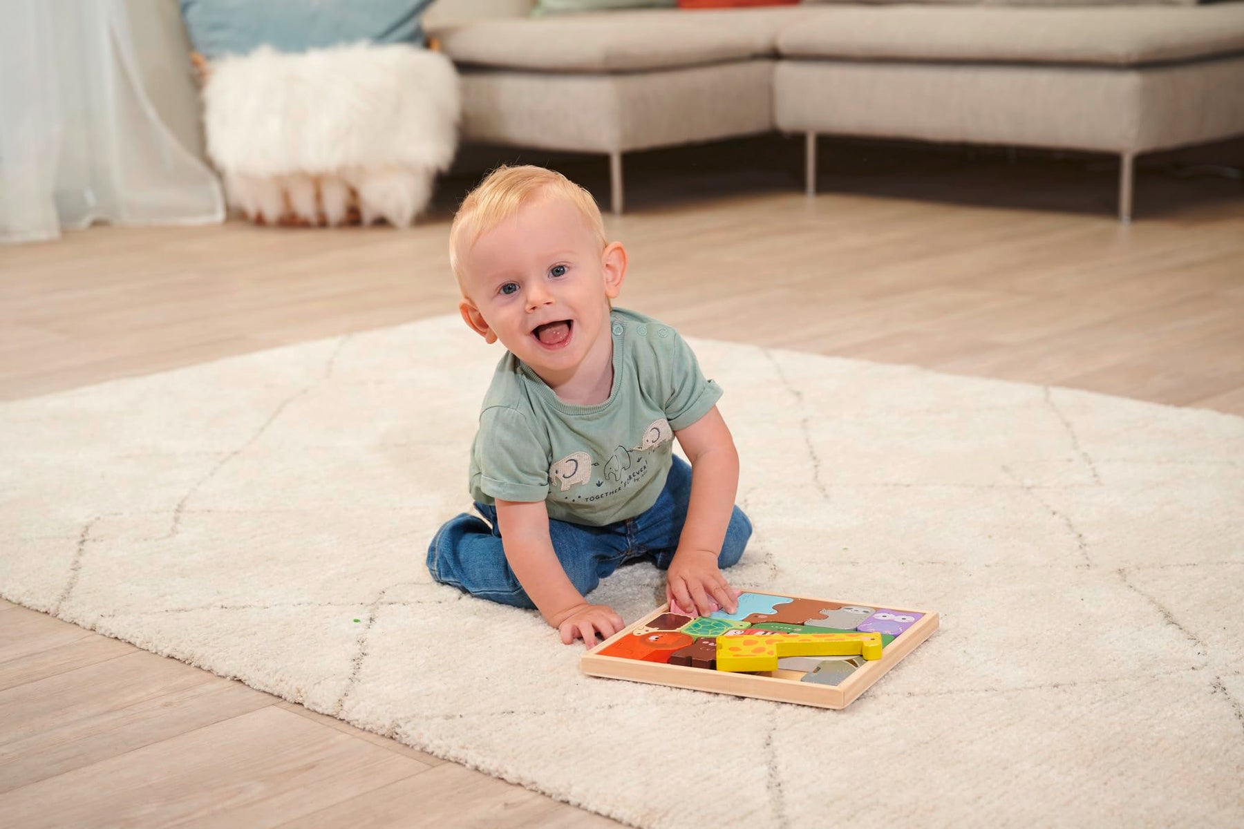 Eichhorn Tierset in Holzbox: Mit dem schönen Eichhorn Tierset in der Holzbox können die Kinder die 14 Puzzleteile in Form verschiedener Tiere zusammenlegen und zum Spielen verwenden. Die Tiere sind auch als Spielfiguren zu sehen und können in der Holzbox perfekt aufbewahrt werden. Das Eichhorn Tierset besteht aus insgesamt 15 Teilen aus hochwertigem Kiefernholz. Das Spielen mit den Tieren sowie das Mix und Match fördert die Feinmotorik, das Zuordnungsvermögen, so wie das Kombinationsvermögen, die Phantasie und die Konzentration. Für Kinder ab einem Jahr geeignet.