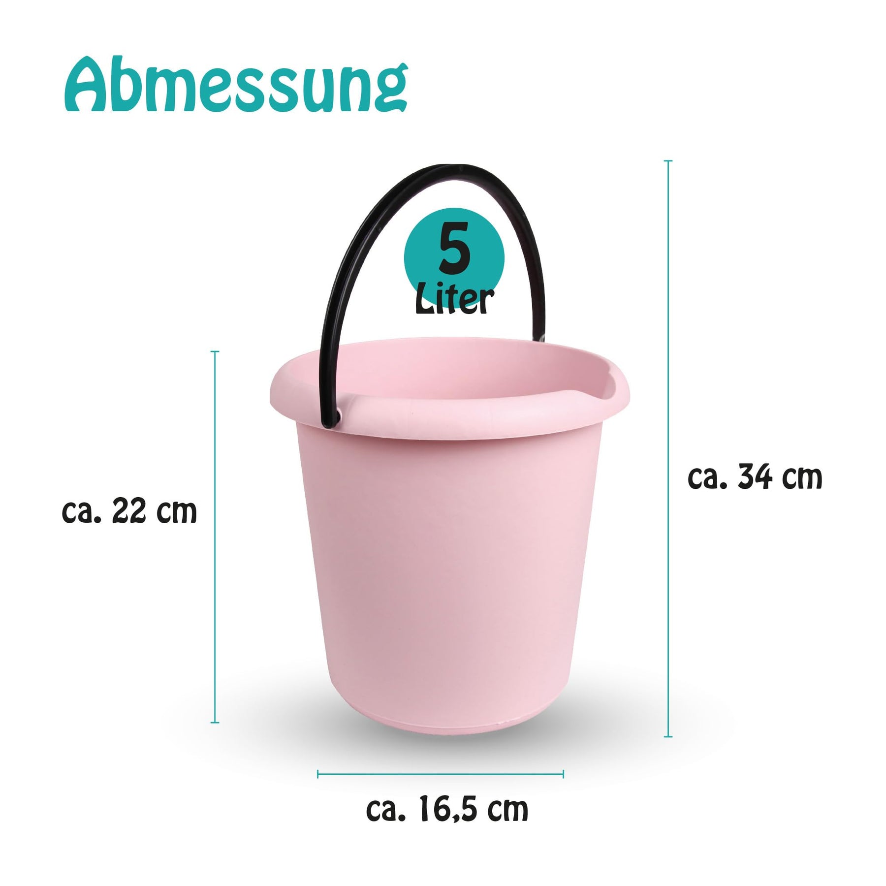 Eimer (1 Stück) Haushaltseimer, 5 Liter, in vers. Farben, Putzeimer aus Stabilem Kunststoff, BPA-frei, Kunststoffeimer Made in EU (Rosa)