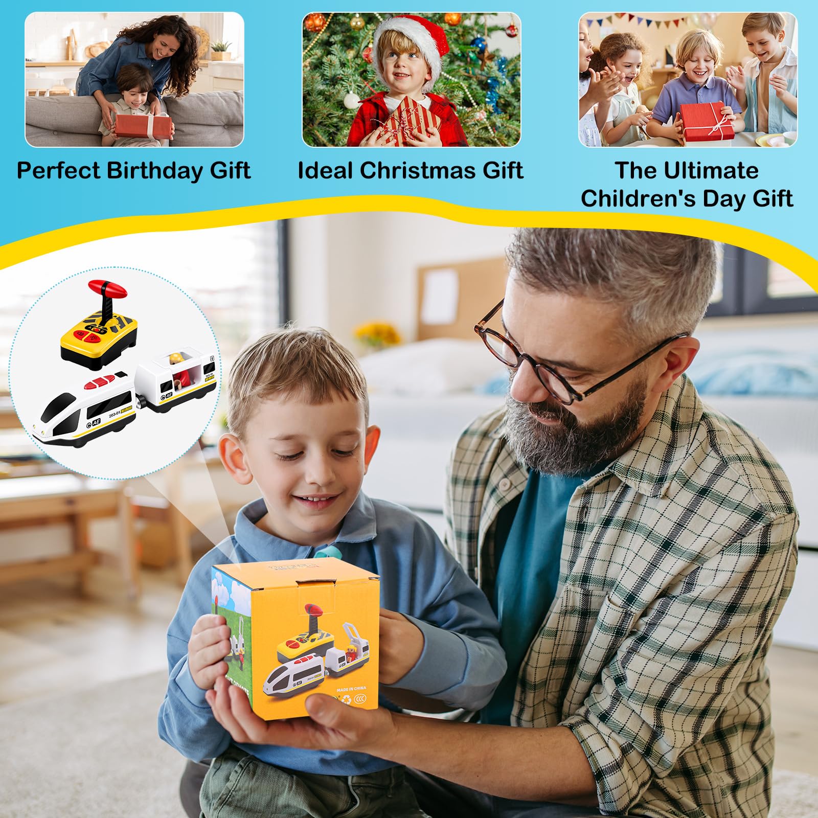 - 【Hochwertige Materialien und Sicherheit】 Der Zug Holzeisenbahn ist mit ungiftigen Farben hergestellt und enthält keine schädlichen Chemikalien. Die Oberfläche des Zuges und der Fernbedienung ist glatt, ohne scharfe Kanten, sodass er für Kinder geeignet ist. Der Zugkörper besteht aus strapazierfähigem ABS-Material, das für Festigkeit und Langlebigkeit sorgt. Er ist stoßfest und hält Stürzen oder Stößen stand, sodass eine lange Lebensdauer gewährleistet ist.