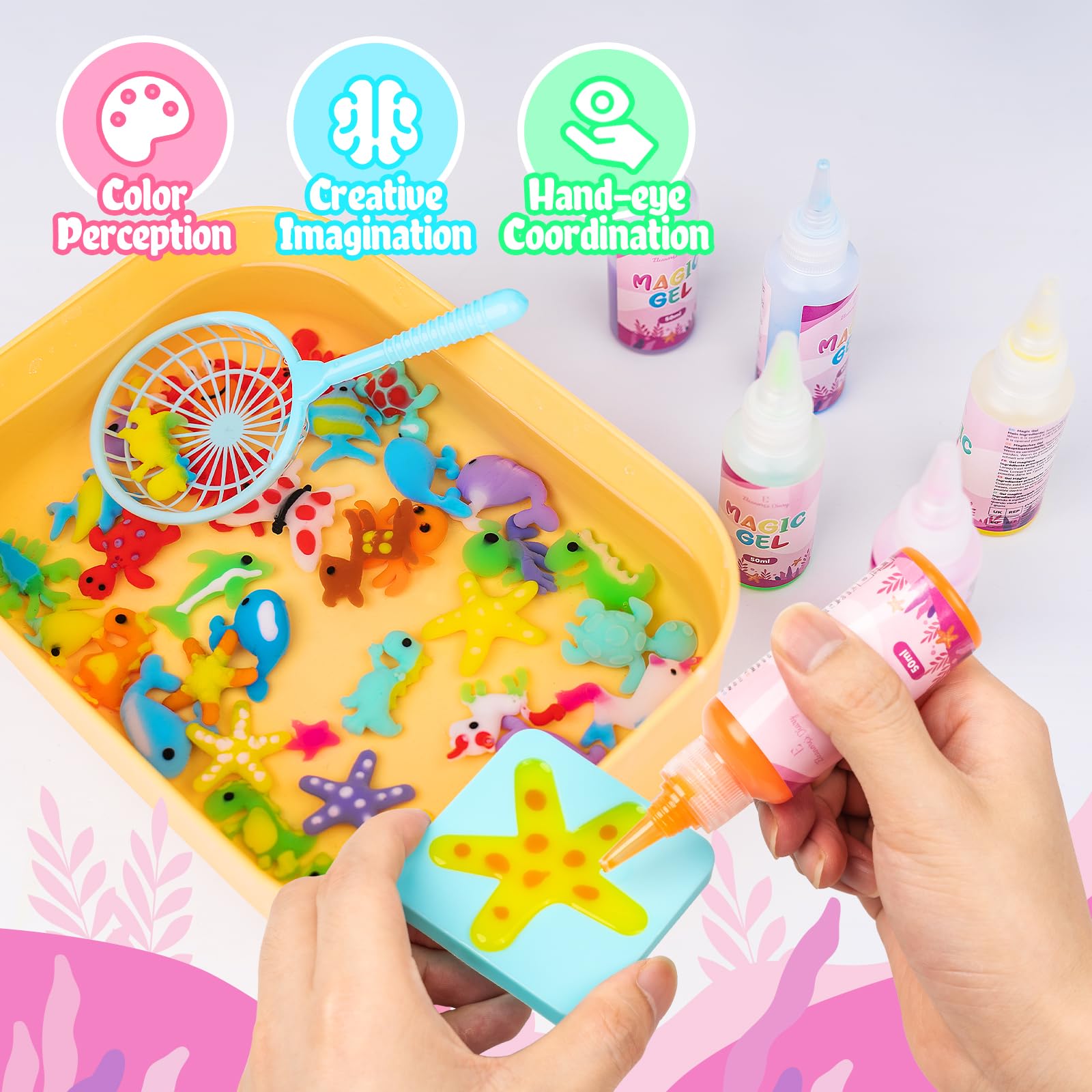- 🦋🦋 MAGISCHES WASSER GEL-SPIELZEUGSET: Das Wasser Elf Set enthält 12 Formen für Meerestiere, 12 Flaschen magisches Gel, 3 Päckchen magisches Pulver, 1 Netz, eine Anleitung und 1 Aufbewahrungsbox. Ein komplettes Set mit Zubehör für endlosen kreativen Spaß.