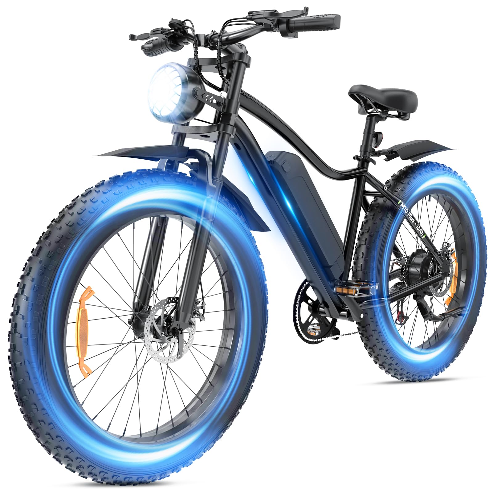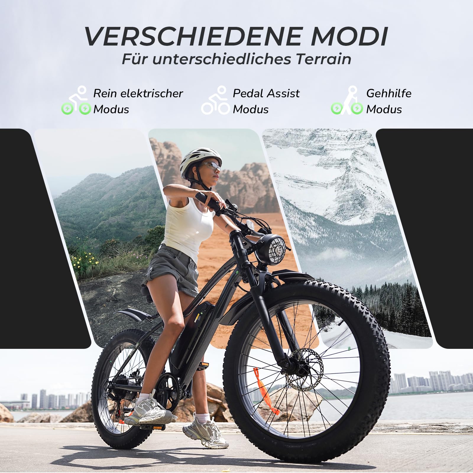 Elektrofahrrad mit 26 x 4.0 Fat Tire für Erwachsene 25km/h 250W Motor,48V 13Ah herausnehmbare Batterie Mountain Ebike Max 100 KM Reichweite,7 Gang Schaltung, Dual Crown Gabel M10 Plus Elektrofahrräder