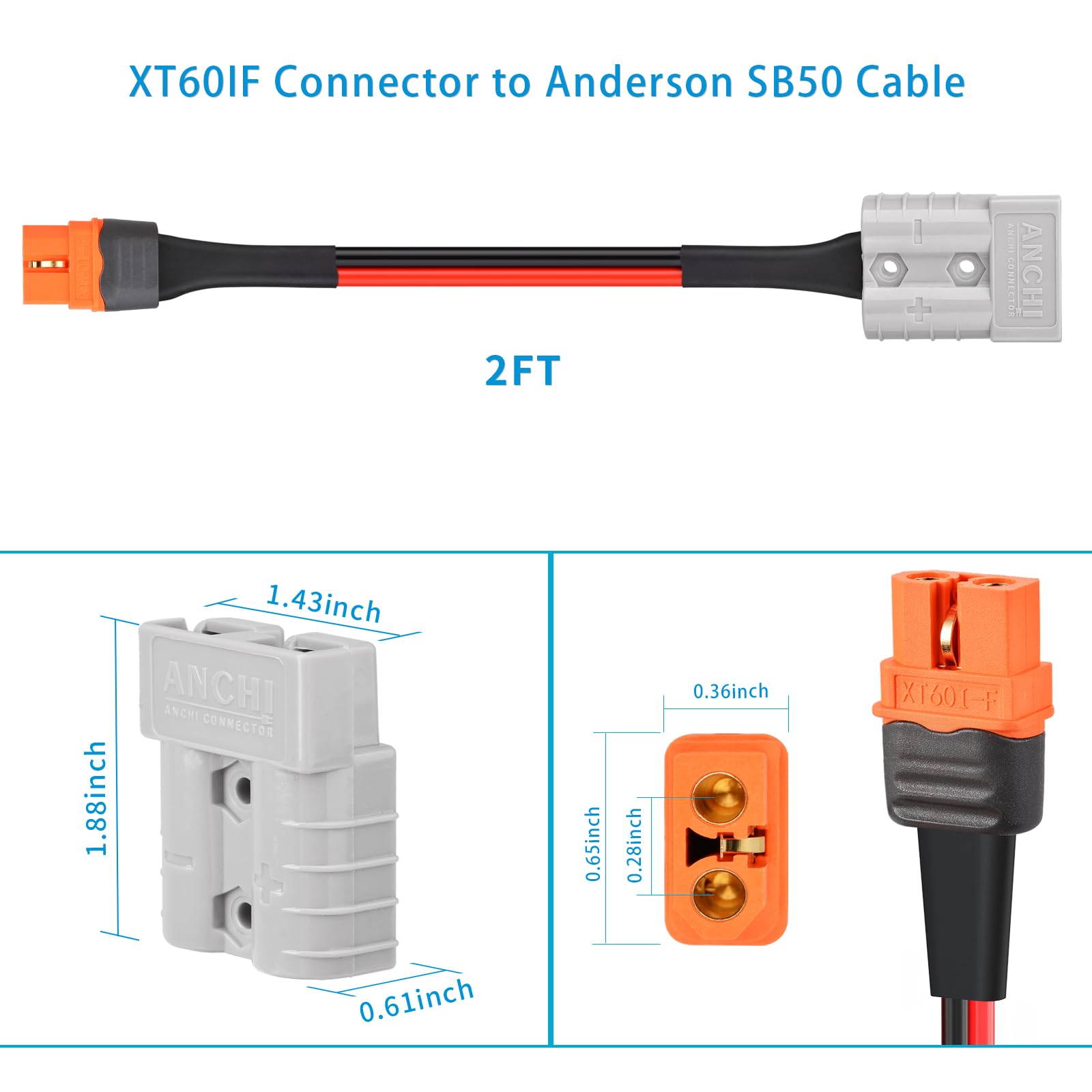 • [Sie erhalten] 10AWG 60cm XT60i auf Anderson Kabel (Hinweis: Stellen Sie vor der Verwendung sicher, dass die positiven und negativen Pole richtig übereinstimmen.)