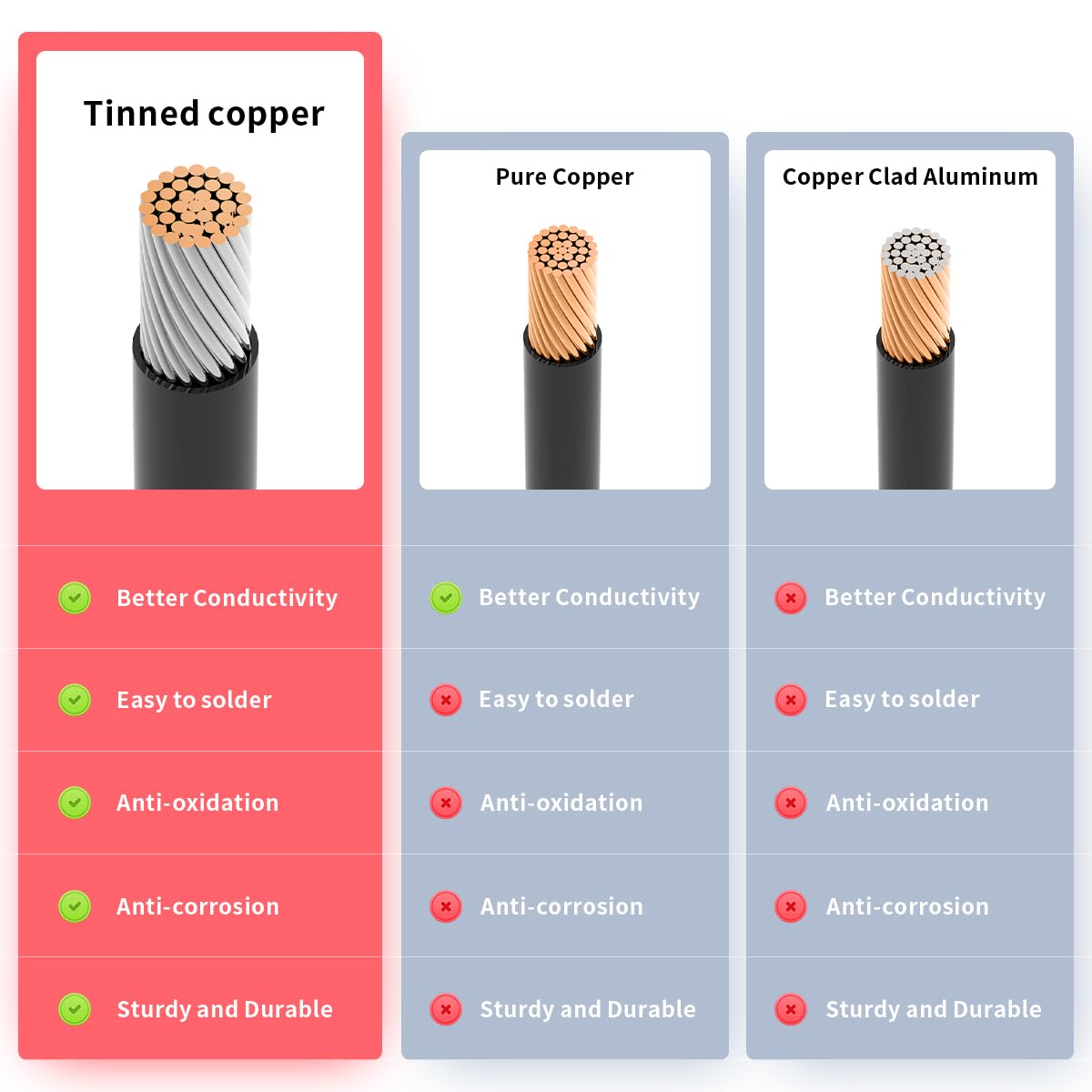 • [XT60i auf Anderson] Dieses Kabel besteht aus verzinntem 10AWG-Kupferdraht mit UL2468-Zertifizierung und hochwertigem PVC-Nylonmaterial. Verzinntes reines Kupfer hat einen geringen Widerstand, ist antioxidativ, korrosionsbeständig und hat eine gute elektrische Leitfähigkeit, sodass Ihr Gerät einen stabilen Strom erhält