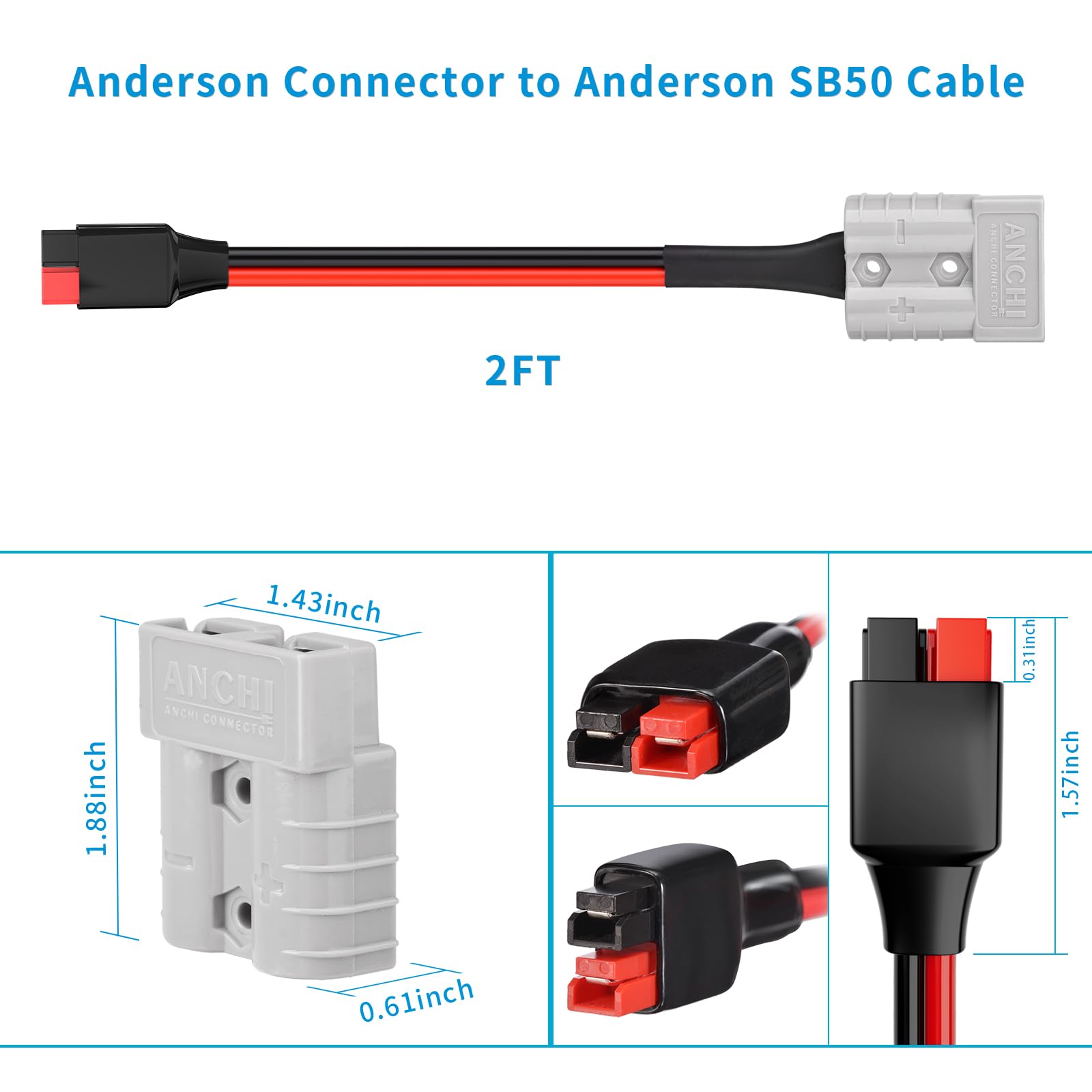 - [Sie erhalten] 10AWG 60cm Anderson Kabel (Hinweis: Stellen Sie vor der Verwendung sicher, dass die Plus- und Minuspole richtig übereinstimmen.)