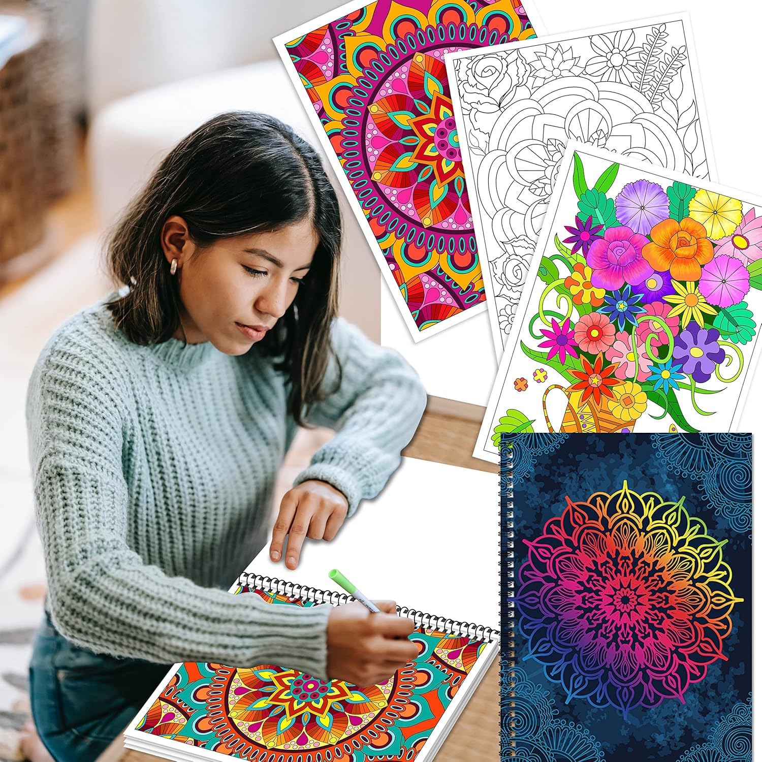 • Hochwertiges Papier: Die Größe jedes Buches ist 28 * 21cm, die für das Setzen in Taschen geeignet ist und kann in verschiedenen Gelegenheiten verwendet werden, um den Körper und Geist zu entspannen und Druck zu entlasten. Verwenden Sie Spirale Tasten zu binden, so dass das Papier nicht leicht abfallen. Der Druck ist klar, und jede Seite hat ein quadratisches Teilungsmuster. Sie können die ganze Seite bemalen und die Ergebnisse, mit denen Sie zufrieden sind, ausschneiden, um Ihr Zimmer zu dekorieren.