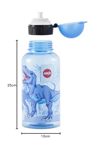 FRÖHLICHE TRINKFLASCHE MIT KINDLICHEM DESIGN - Bereiten Sie Ihren Kindern eine große Freude - Die Emsa Trinkflasche KIDS sorgt für mehr Trinkspaß bei den Kleinsten. Mit dem spannenden Design und dem integrierten Namensfeld gibt es sicherlich keine Verwechslungen in Kindergarten oder Schule. Die Flasche eignet sich neben stillem Wasser auch für Säfte oder leichte Fruchtschorlen dank des fruchtsäurebeständigen Tritankörpers. Hinweis: Die Flasche ist nicht für kohlensäurehaltige oder heiße Getränke geeignet. Dank hochwertigem Tritan ist die Trinkflasche robust, ein absolutes Leichtgewicht und kommt ohne zusätzliche Beschichtung aus. -HOHE SICHERHEIT-Die komplett überarbeitete Trinkflasche ist 100% dicht und eignet sich ideal für den Transport im Rucksack. Kinderleicht zu öffnen und schließen: Die roten Soft-Touch Pfeile auf dem Verschluss zeigen Ihrem Kind die Drehrichtung. Eine weitere rote Markierung zeigt den Öffnungszustand an. Zur besonderen Sicherheit ist die Verschlusskappe im geöffneten Zustand nicht verschließbar. Der Deckel rastet beim Öffnen in der gewünschten Position ein, ohne zurückzufallen. - 100% HYGIENISCH - Das Mundstück ist in zwei Teile zerlegbar und kann so problemlos gereinigt werden. Zudem ist die Flasche sowie das Mundstück spülmaschinenfest und das Weithals-Außengewinde verhindert eine Keimansammlung. Für eine unbedenkliche Verwendung ist die Trinkflasche von Emsa BPA-frei.