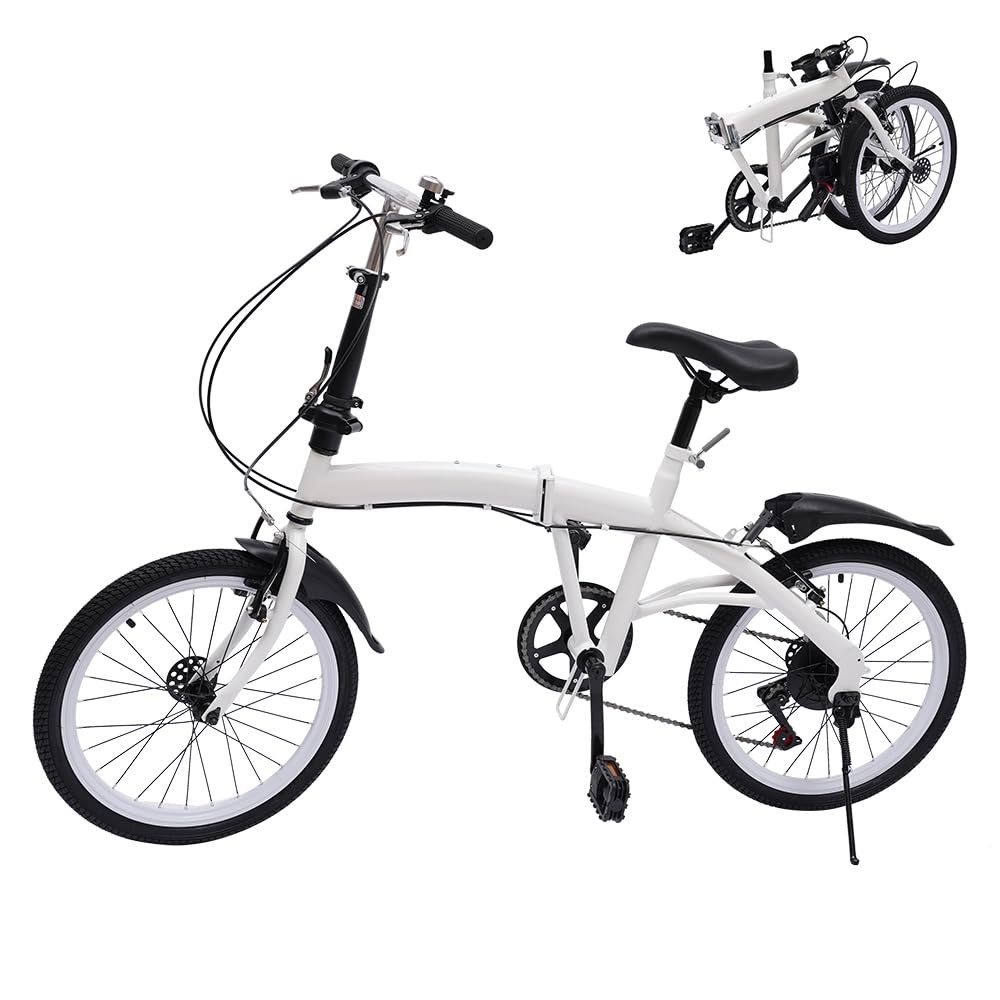 ERnonde 20 Zoll Erwachsene Faltrad, Klappfahrrad 6-Gang Doppel V-Bremse Fahrrad, Höhenverstellbar Klapprad Camping City Bike Gift Weiß